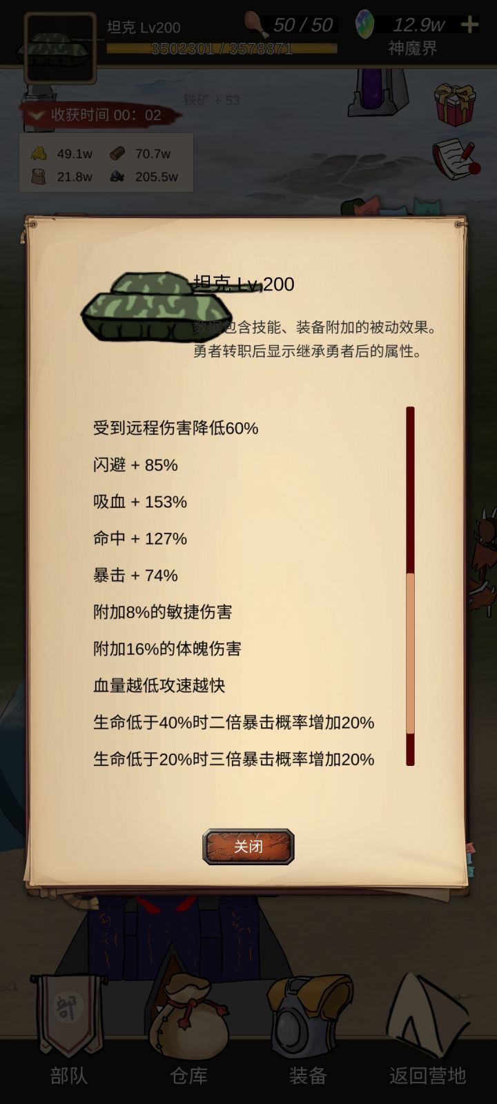 勇者单通灾害C,AI防御换神圣庇护可以去刷恶魔城 装备刚需满吸血满溅射,暴击闪避越高越好 攻血比5:3能最大化利用治疗技能,保证奶上的一口在5s内死不了就能一直扛着,自己剩下的血用来保证稳定性防止反击过于演员 101以后第五个技能科学家的疯狂可以提高效率。