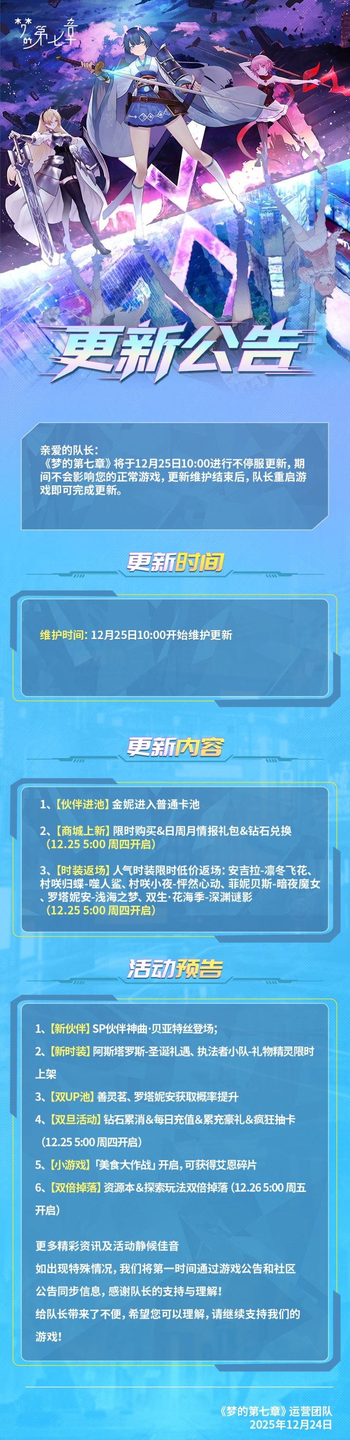 《梦的第七章》12月25日不停服更新公告