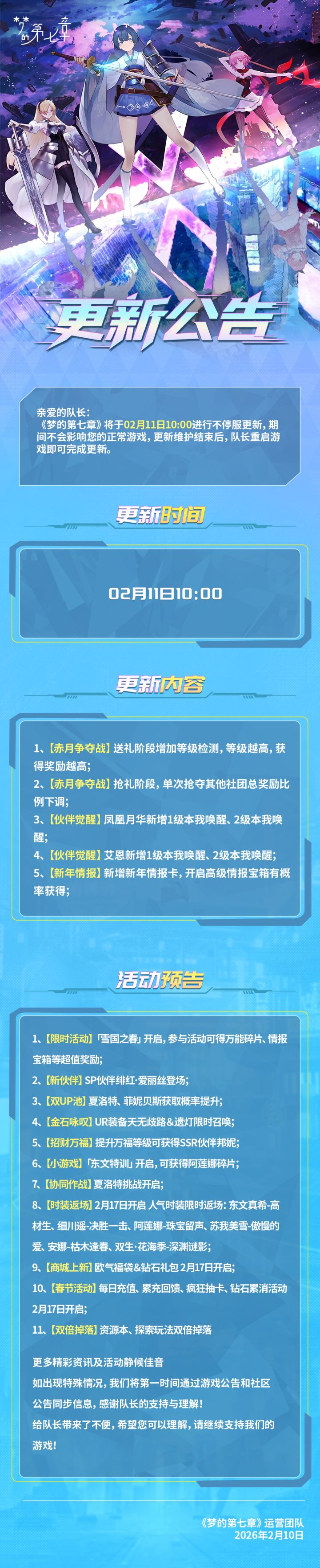 《梦的第七章》2月11日不停服更新公告