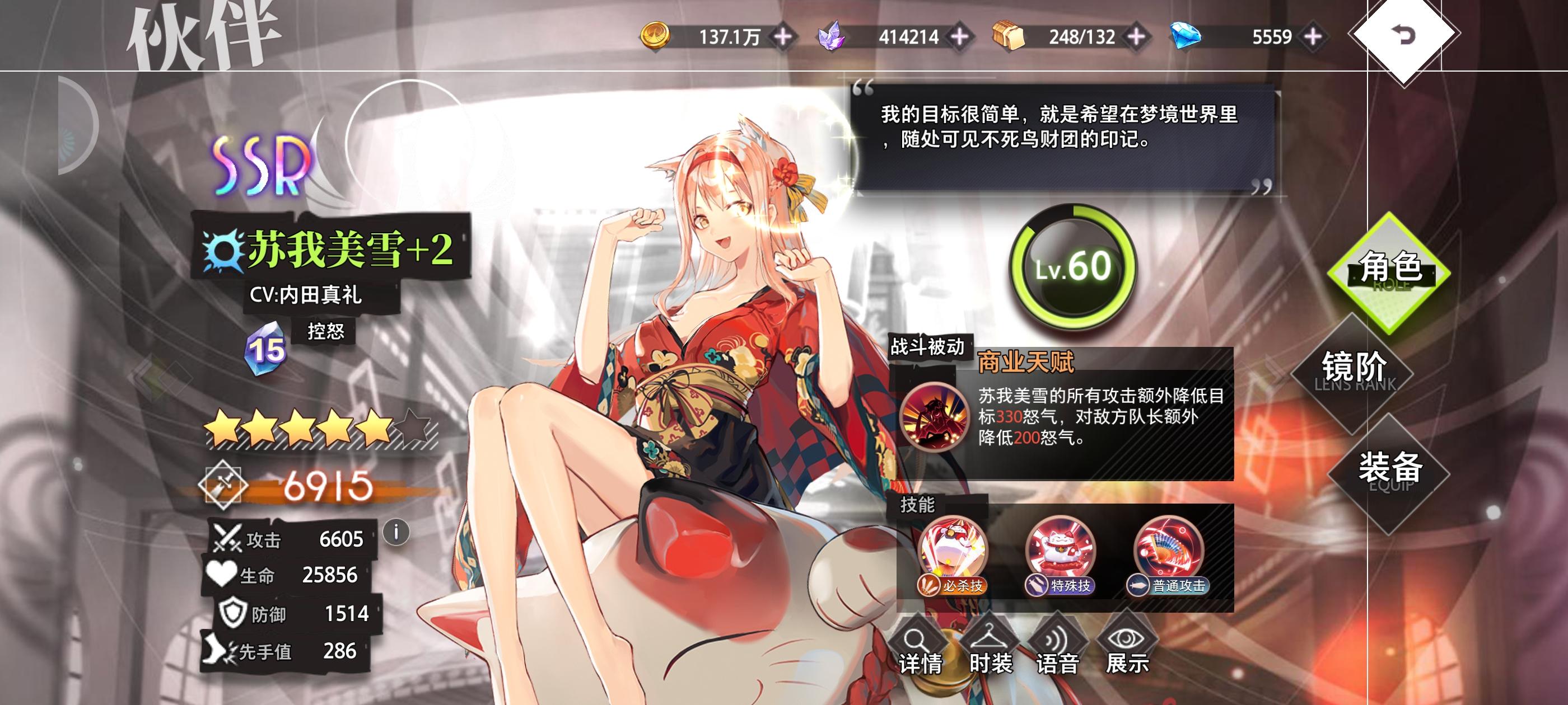 随缘玩了一段时间,美雪也是5星了id:34150区服:真希的箱庭#梦的第七章