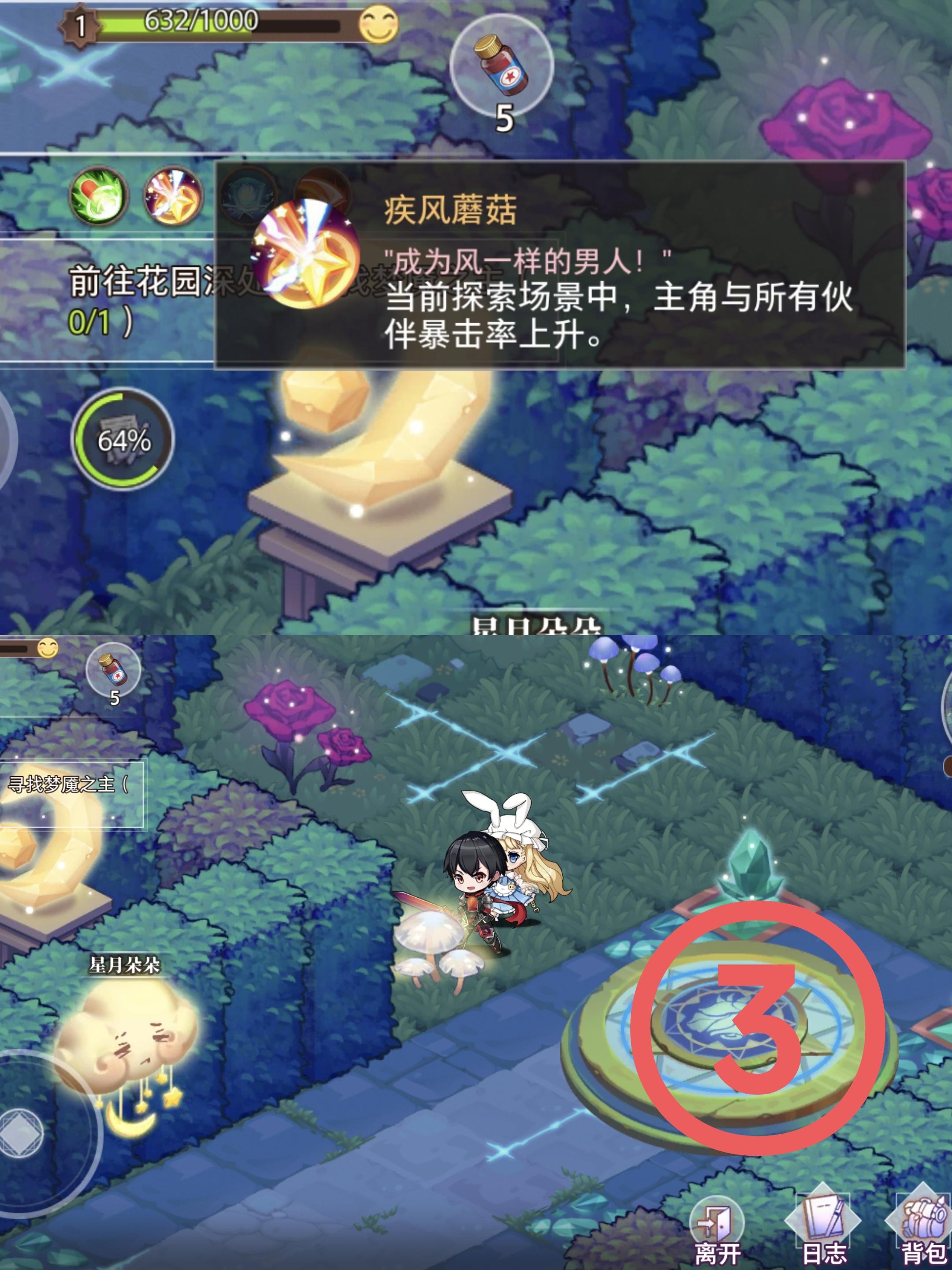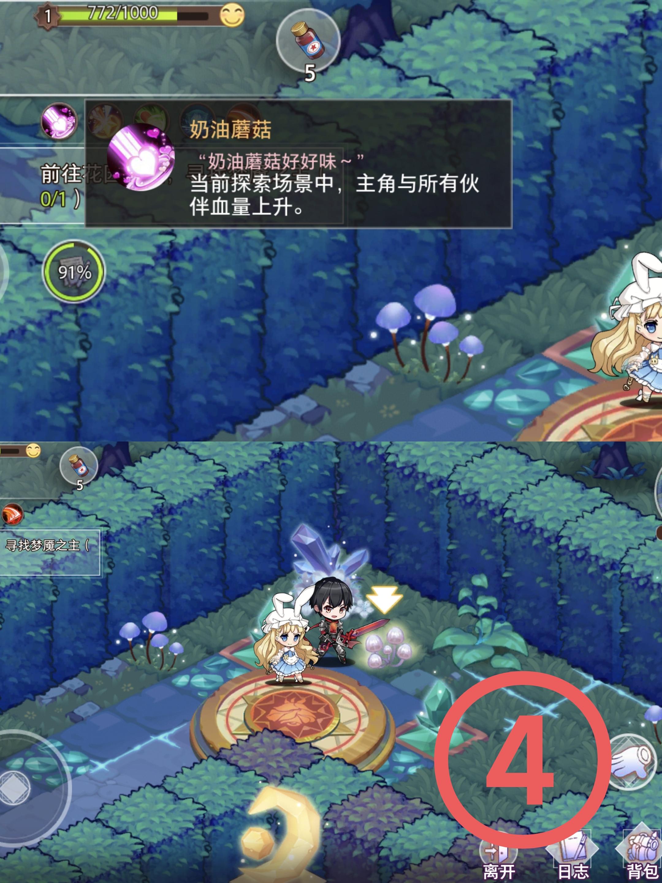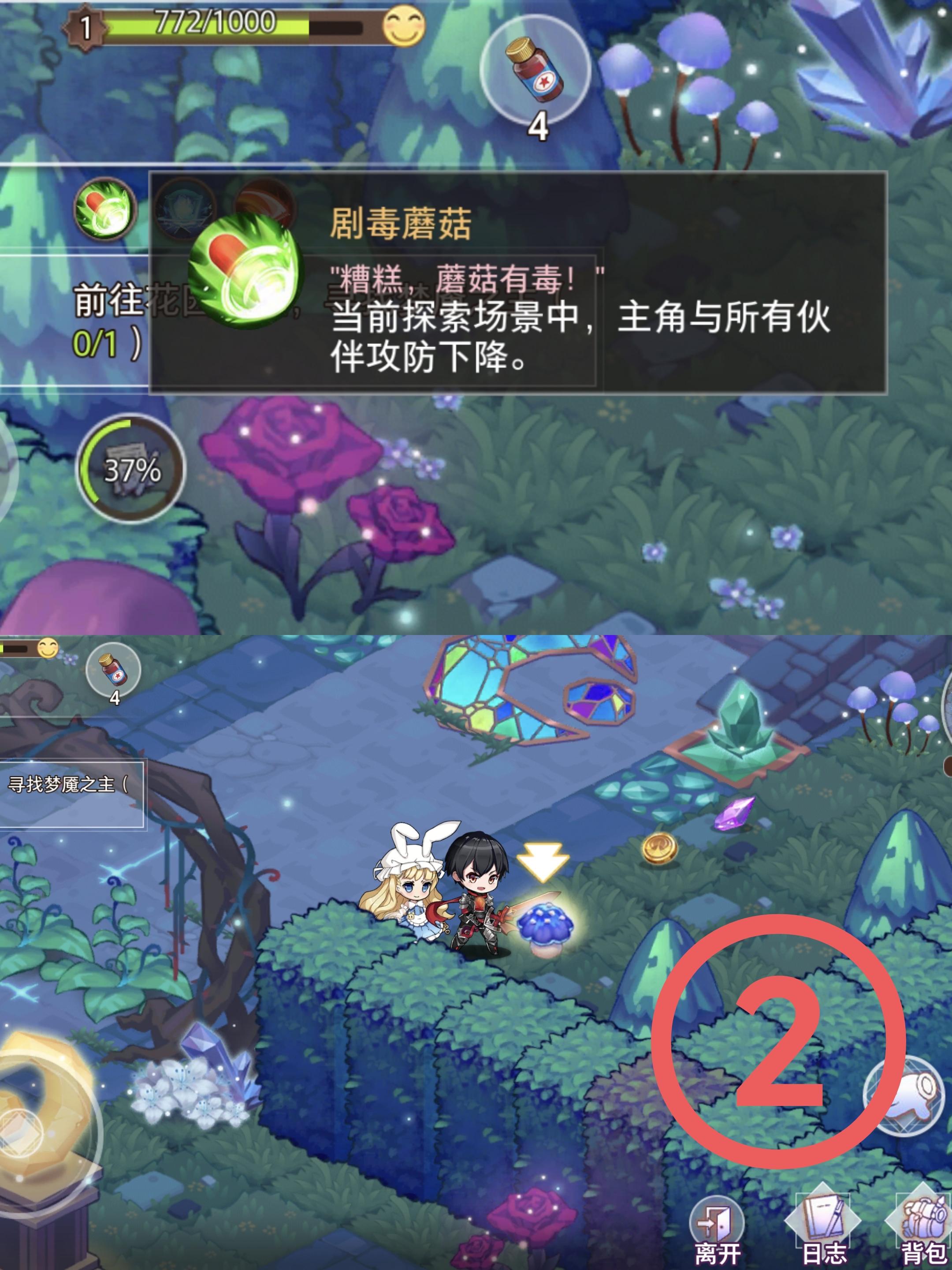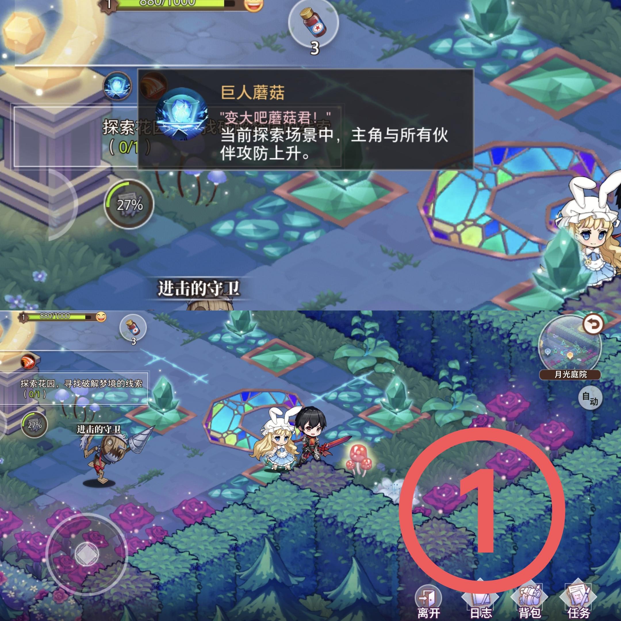 在游戏《梦的第七章》里,探索玩法是许多玩家都会去玩的,因为可以获取大量金币、晶石、经验瓶等。完成相应的任务还可以获得额外奖励。但今天要说的是里面有连老玩家都不会注意到的小知识。例如探索《幻梦之境》里的一些蘑菇,有的蘑菇吃完之后会为主角与当前出战队友带来增益,有的蘑菇吃完之后则会带来减益。(增益与减益只会对当前探索场景生效)例如图1,巨人蘑菇本体呈红色,吃完之后会为队伍增加攻防。图2,剧毒蘑菇本体