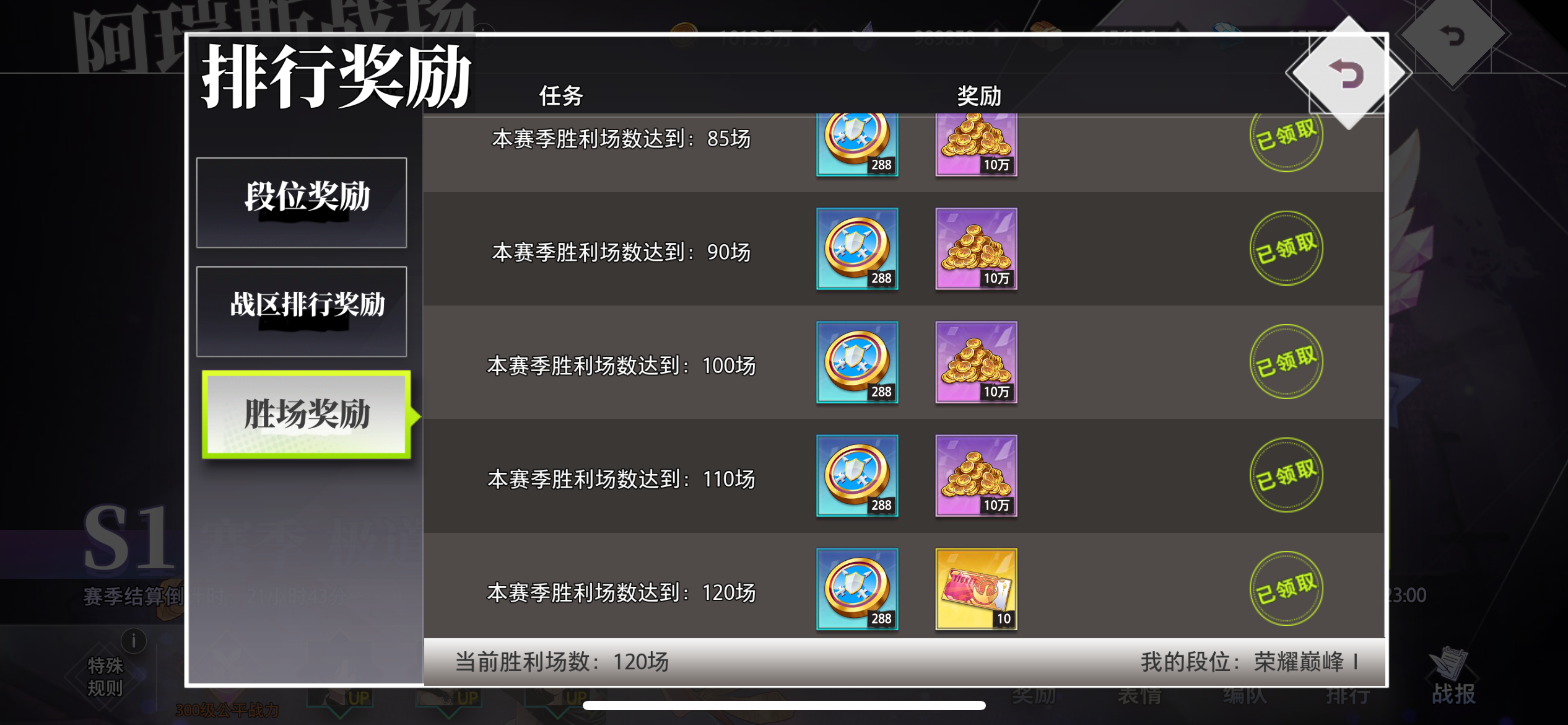 阿瑞斯120胜留念id:103220区服:杜兰德尔