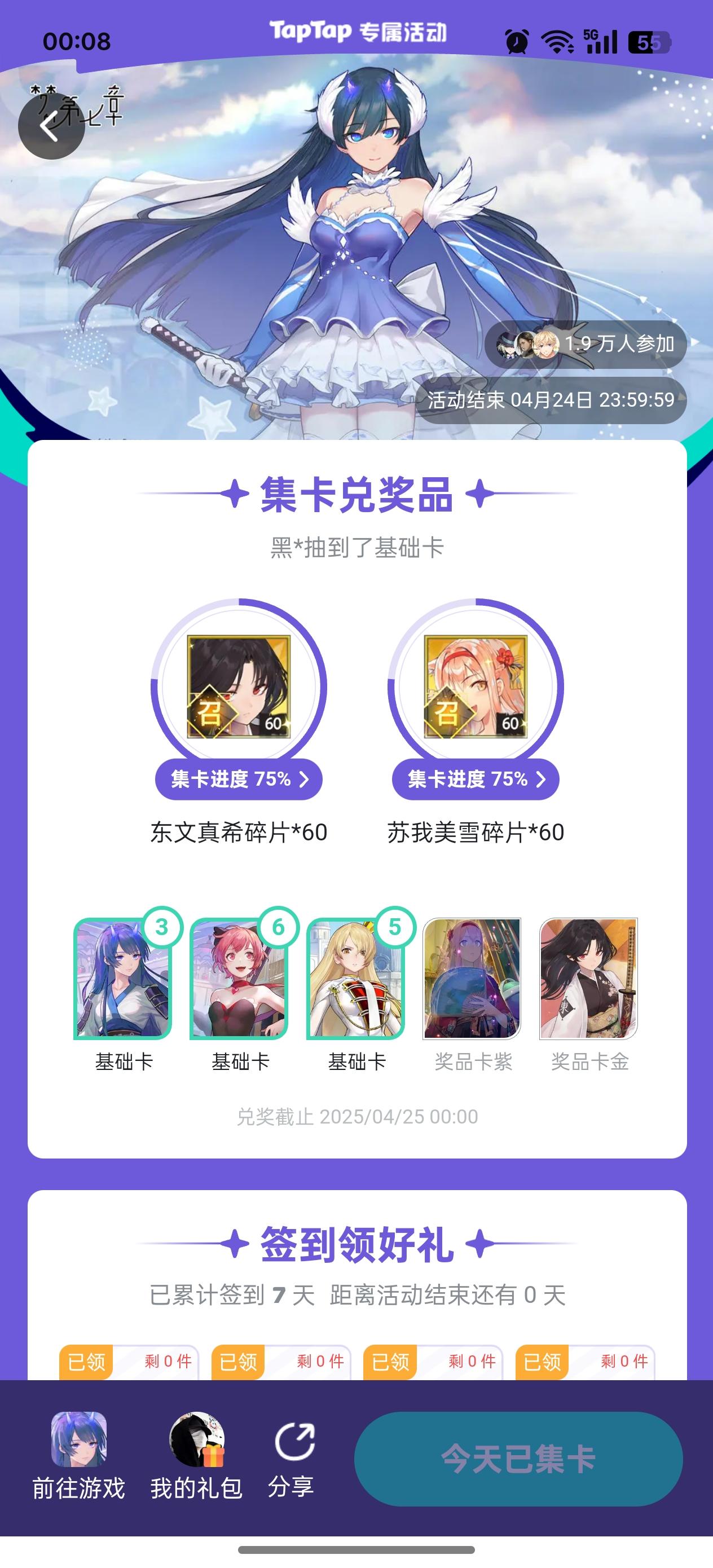 这个感觉不是第一天抽到卡,后面就不给了吧,我是第一天抽到的东文ID 121083区服 魔女集会所