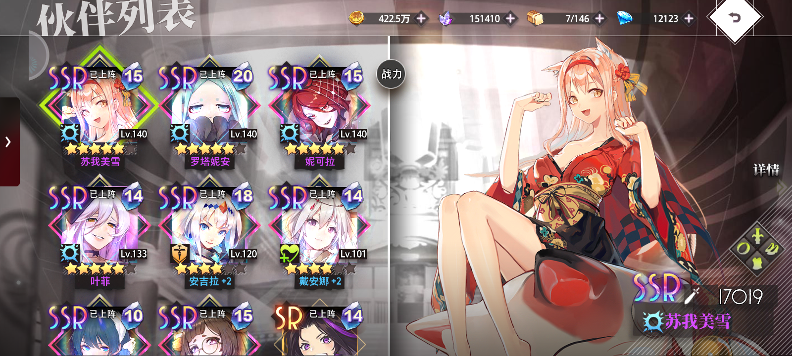 区服:匣中珍宝 id:82921 昵称:77566 玩了一周多了,也开始卡关了,本来呢对这游戏印象是非常好的,所以回来玩了,结果玩到现在什么都卡着你,真是全方位逼氪,关卡难度最起码提升好几倍卡你。十连抽卡SR调成只出一个,尘卡你,我一个平民玩家包里竟然6个带虚框的卡等着尘升星,原来梦境国服时我升六星卡都没缺过尘,十连基本好几个SR当狗粮。然后金币水晶矿经验瓶卡你,真是全方位卡