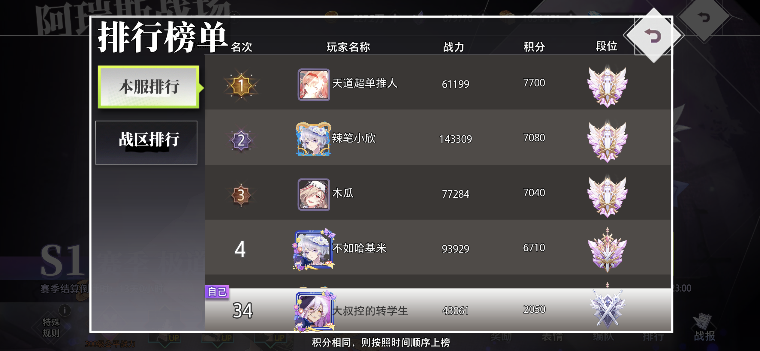 不知道大家这个都打到什么分段了呢因为是新区的原因随便上哈哈哈就是排不到人服务器:记忆断层游戏ID:165397