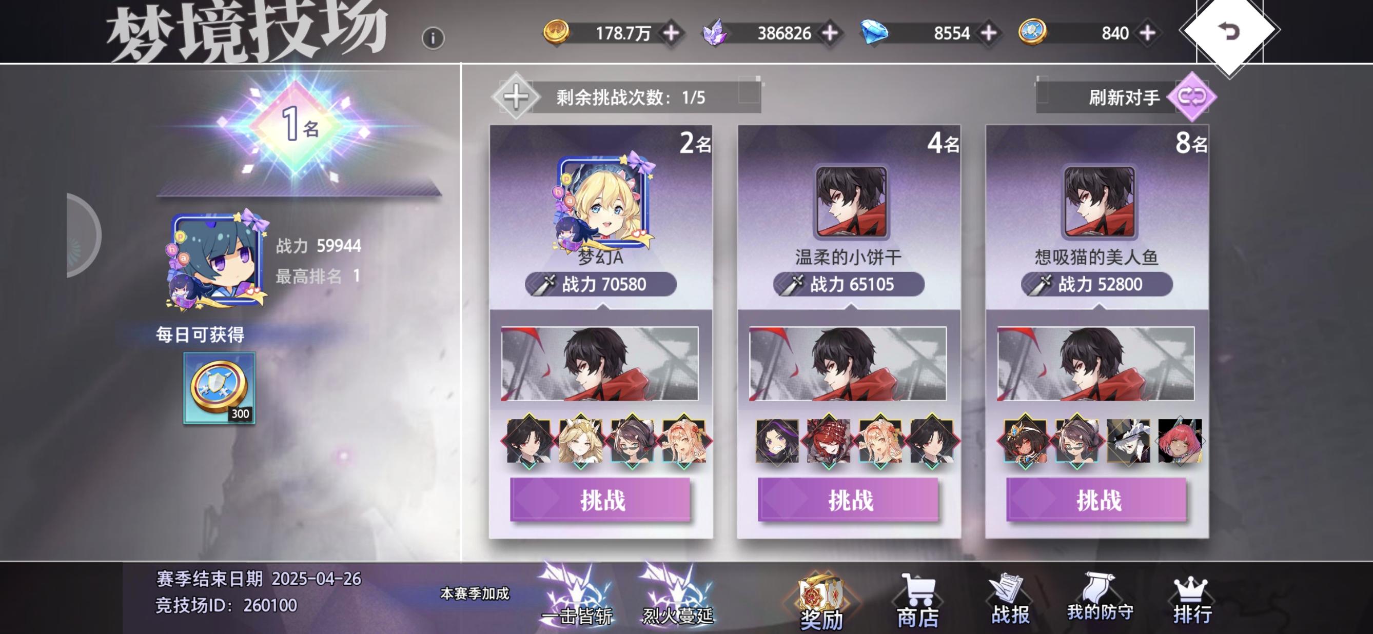id:115734区服:双生之境还好竞技场是自动按顺序出牌,不然还真打不过,原来第一名是我们服大佬来着#梦的第七章