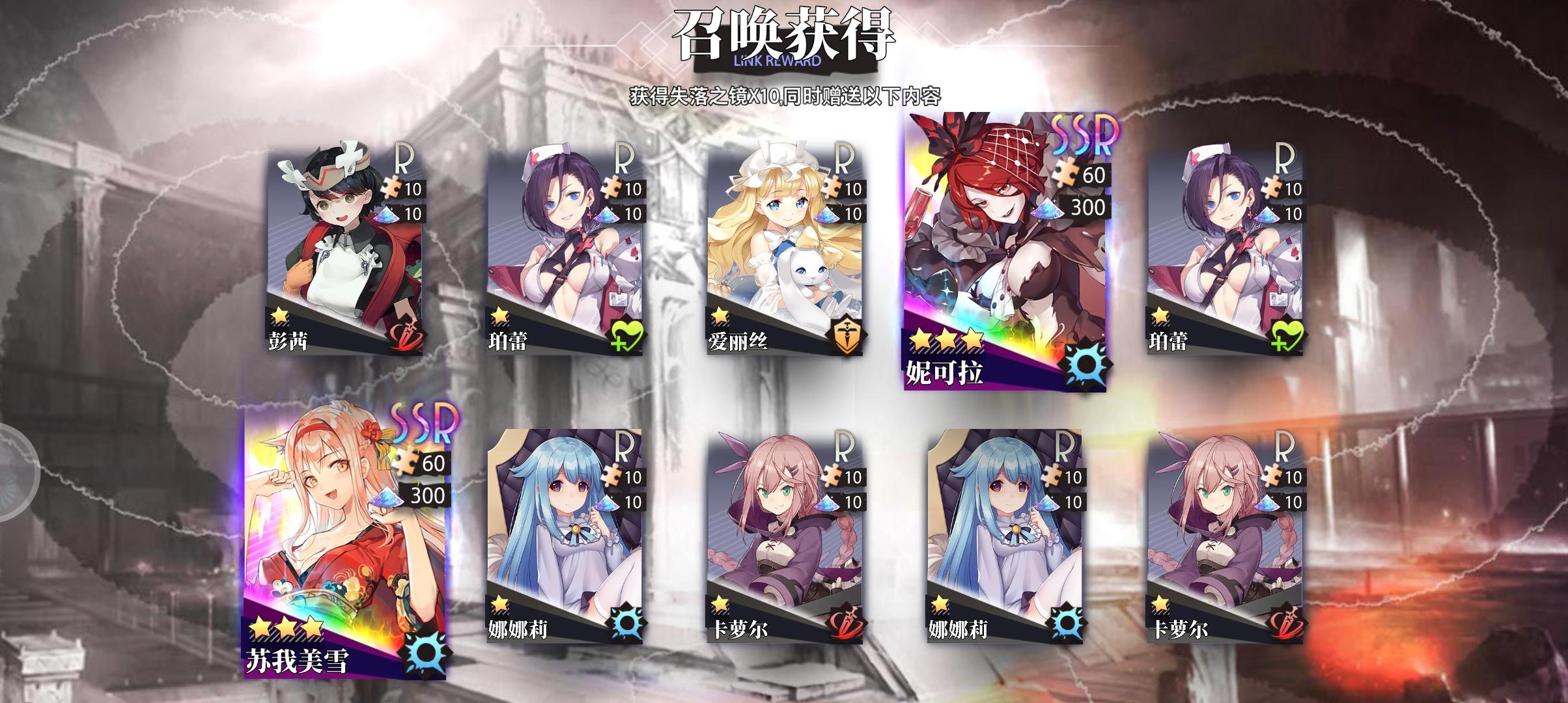 游戏id: 115734区服:双生之境 摆烂の咸鱼我这号运气还不错,开局连续抽出三只妮可拉,就这样玩下来了,本来不准备充钱的,后来看首充的凤凰好看技能也不错,尤其是她的那个卡组技能,随机三个角色无敌十秒,果断六块入手,主打一个首充陪伴,今天终于凑齐9个SSR了