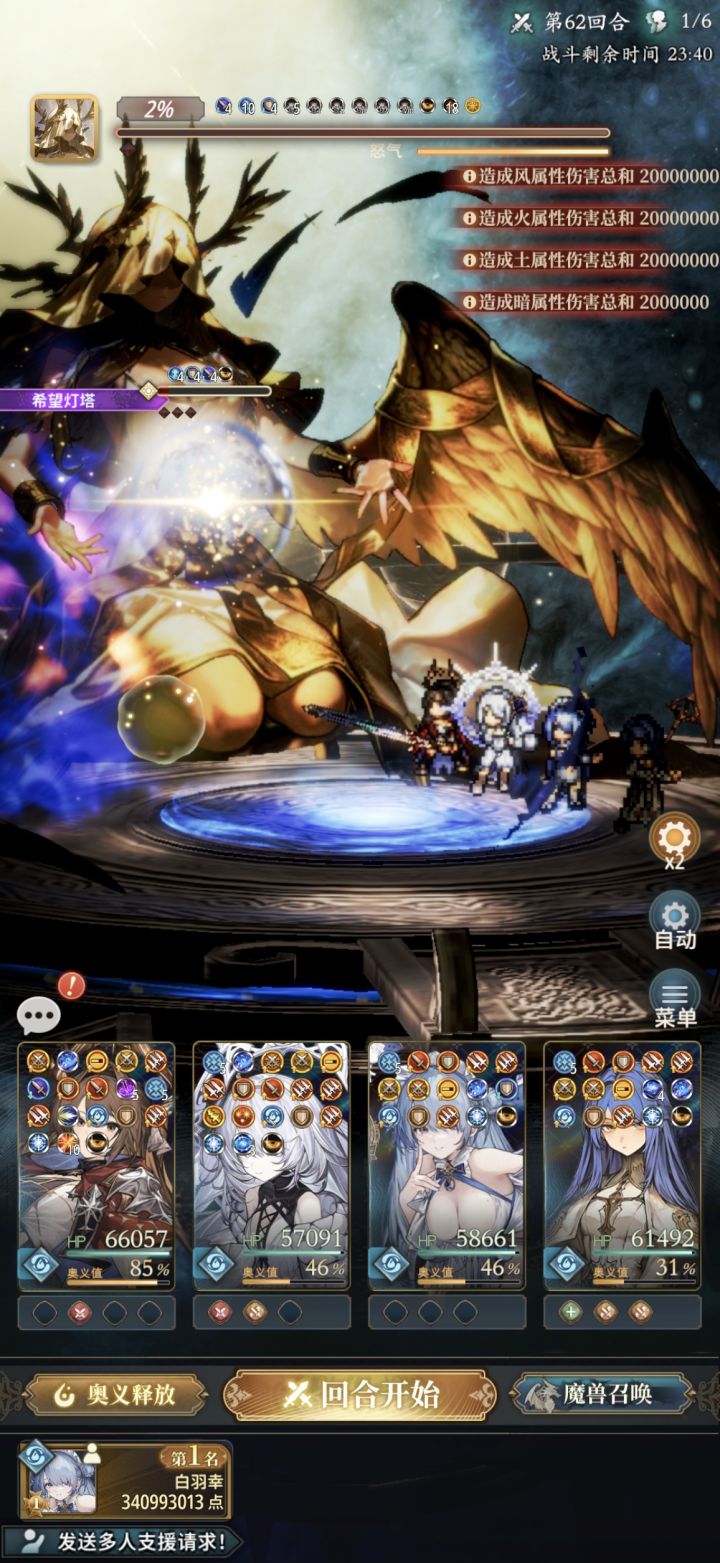 原理今日版本更新后,水岛主的属转技能搭配飞龙的减伤,可以达成几乎全程无伤的效果,同时利用奈法的3技能刷新岛主cd,就几乎可以全程覆盖。目前存在的问题是,打到大后期(20t以上),角色奥义可能回转不动,导致奈法的刷新晚几个回合,减伤就存在了空窗期。还有boss给的debuff会导致奈法直接把岛主奶死,所以我们带了圣者的祈祷来防debuff,但还是存在空窗期,后排也放了天人以防万一,但还是不能保