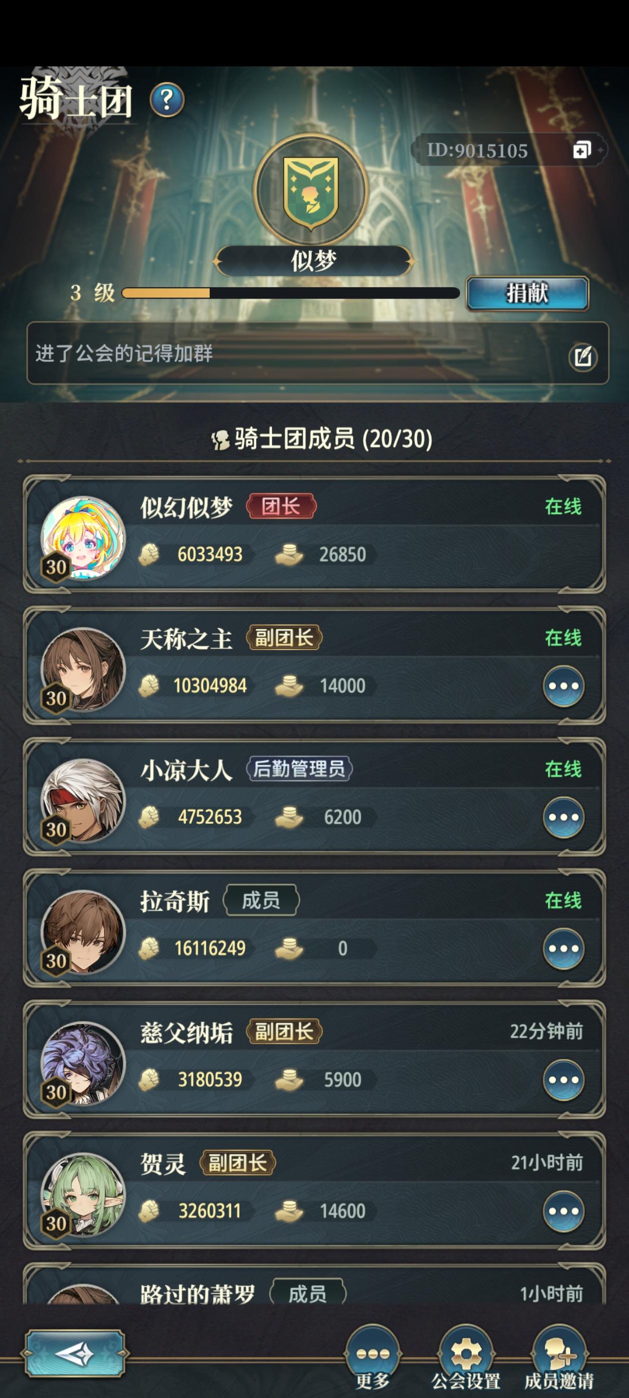 骑士团id:9013657,每日签到战力跟上就行,没有群不懂的可以加官方群交流,主打一个休闲。#发现好游戏 #游戏日常 #风之痕迹