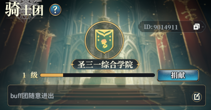 欢迎加入骑士团哈每天都会开BUFF骑士团ID:9001028有条件的可以加一下群哈(加群聊天