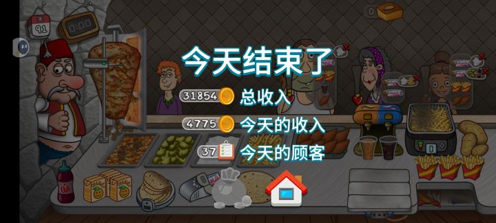 很好玩的游戏。没有卡金币导致恶意延长游戏寿命。流程大概8小时左右。我也是没攻略烤盘开局的,确实有些忙了。但是前期也不能全弄加效率的。会导致客人跟不上。忙就优先升级刀,工人。忙得过来可以视情况点开烤盘,石榴汁,饮料机。虽然步骤变多但是盈利也变多。