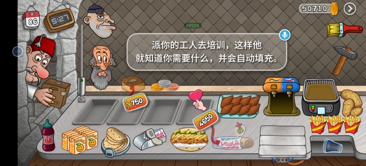 下载四天玩了6.3h肝到目前这个进度。BGM很魔性,店铺升级个人建议先升级员工/打包袋/配料添加,然后升级炸薯条机,再然后增加和升级薯条/红薯/饮料机/杯子等,再再然后升级店铺装潢/金币收集等,最后的最后是人数到五人和选配料。(PS:切薯条可以长按,不用划来划去,炸薯条的袋子一级是要自己拖到薯条筐里的……)店铺装潢是提升价格的,这个可以在主要设备二级升三级的过渡阶段升一级,主要设备三级以后再