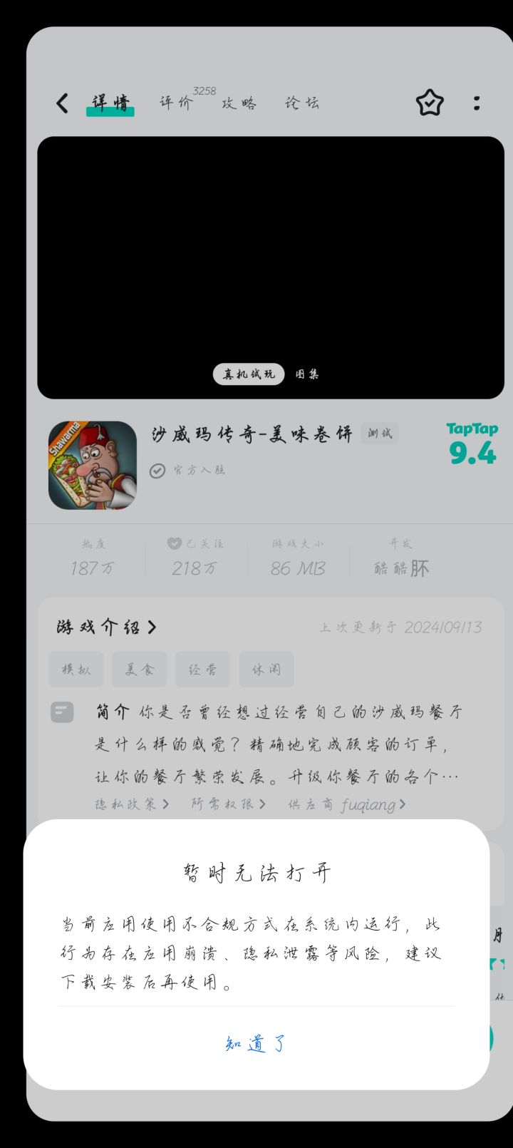 为什么不能玩了呀?#沙威玛传奇美味卷饼
