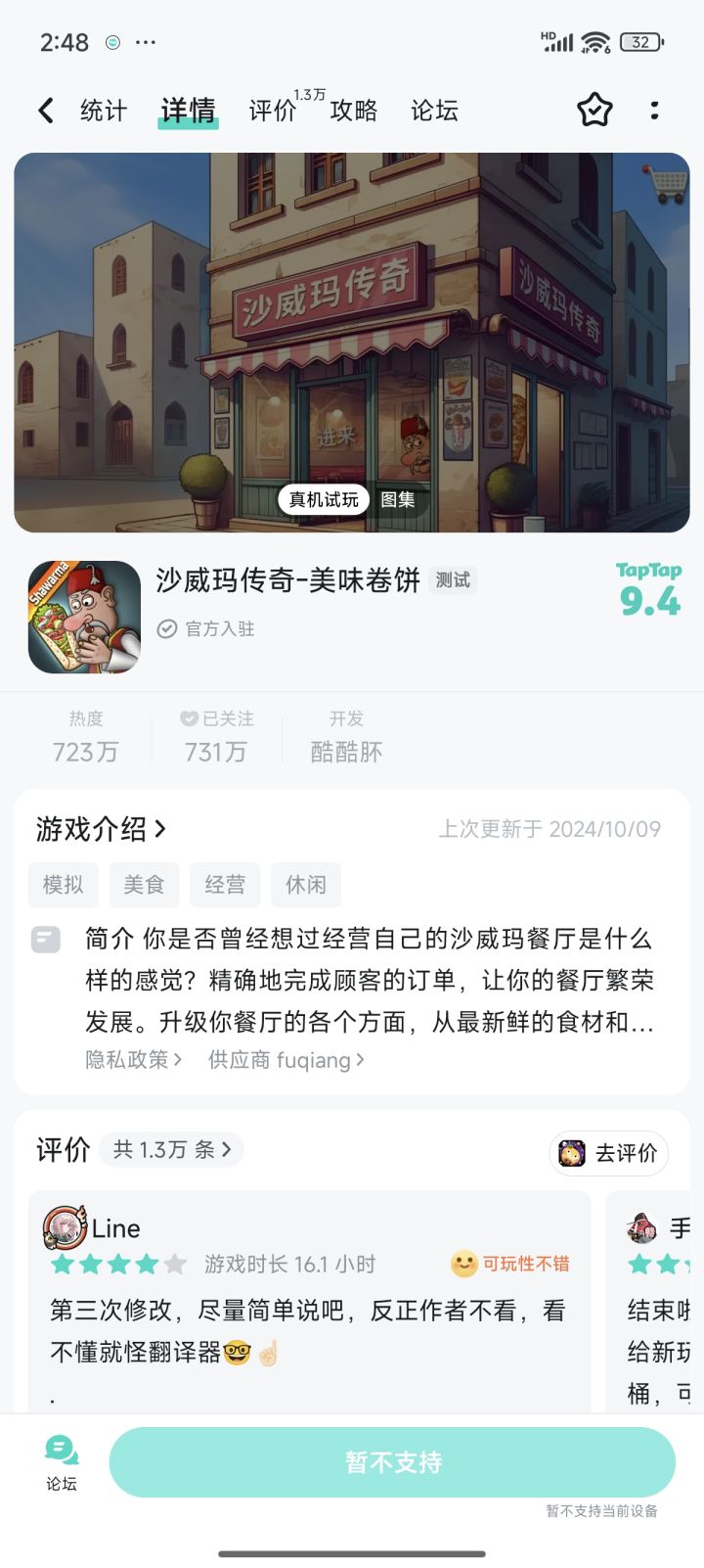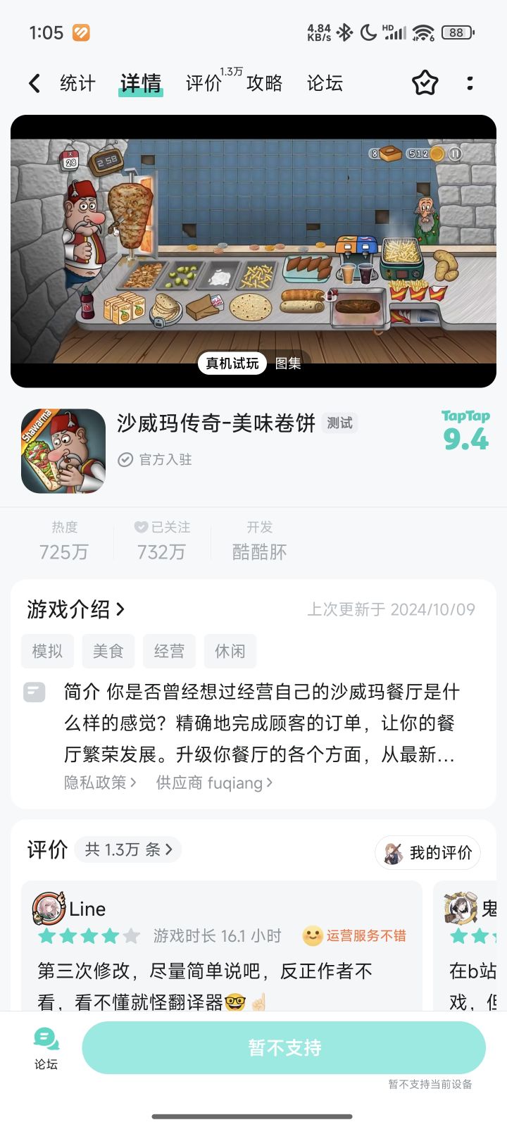新手机买过来快两个月了,到现在还是玩不了这个游戏在手机里非常合适,做新系统的适配非常费时间嘛?为什么不给澎湃2.0做适配啊,明明1.0玩起来很正常的#沙威玛传奇美味卷饼