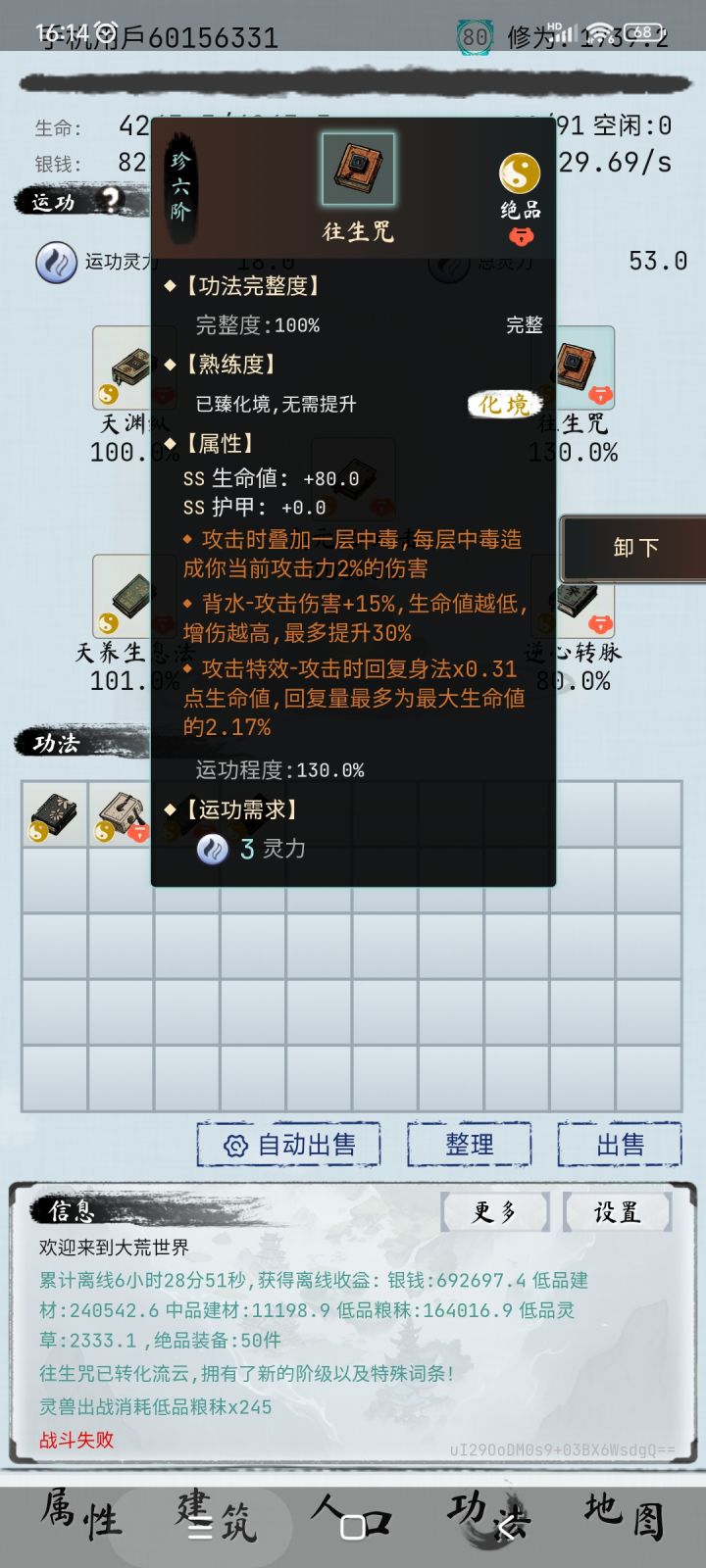 昨天更新后,已经两次了,退出游戏后,过了2-3小时后登录,没有结算离线奖励,还是我刚关闭游戏时候的数据。