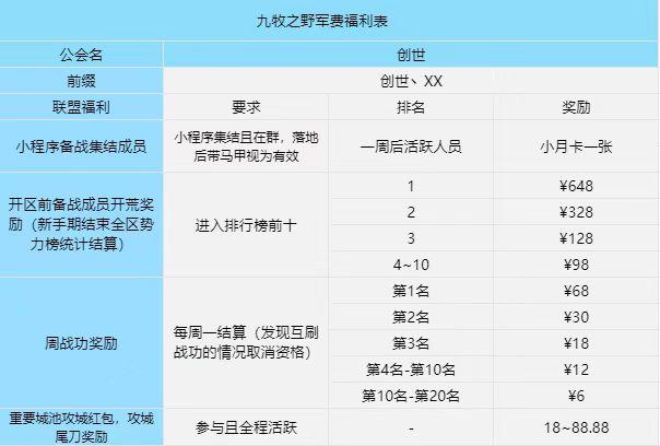 一、比奇堡军费 (兄弟500+)💙管理:双月卡(每月底) +赛季500块红包 💚成员:每周六晚上八点联盟群看运气抽大小月卡,没抽到的也有首冲+十元红包(公测发备战小程序奖励的1500块拼手气红包)💜注意:有大佬无金主,单纯活跃联盟气氛,主要还是一起玩的开心,社交游戏长期一块组成一个小团体。 二、比奇堡联盟其他福利: ①联盟有配将大佬帮你看号(不是那种抄作业的搬运工,比很多还有理解的配将大