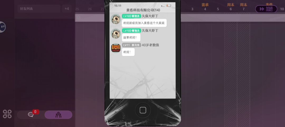 游戏好玩,机制挺新颖的文本的话……有一种让人高血压的美感,十分贴心地将重复的对话加速了,并且模拟了屑老板的神金之处不过个人感觉有点太高血压了,每次失败之后聊天框就来一句“不会做的事就不要做”极具嘲讽力(这也是我老想玩这个游戏的原因是一,就是任务完成了打脸屑老板,然后跳槽到sim那里)不过结局居然没有跳槽结局,有点遗憾了玩法上……直观体验就是纯运气游戏,每次缺绿的员工时来个蓝的,导致dead