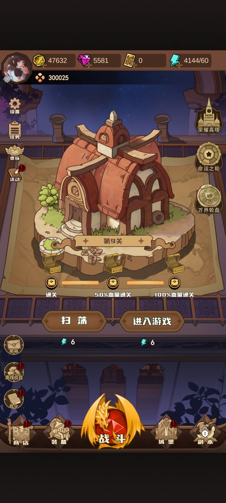 1,优先小黑6级,然后蓝猫,月女,大圣先拉到6级。再看自己喜欢选一个主力拉满。2,空闲加QQ群领福利。3,最好买个免广告,这游戏需要点的广告有点多4,存5万去转轮盘拿技能宝石。5,可以扫荡5次,过不了图就去扫荡