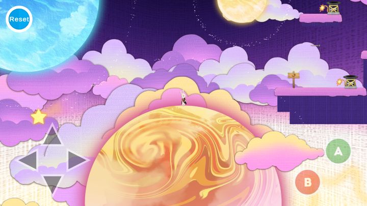 星空有着较少的土地,取而代之的是各式各样的小星球,兔子能在不同的星球之间穿梭。当然,为了突破每个星球的第一宇宙速度,兔子需要一些小小的助力……