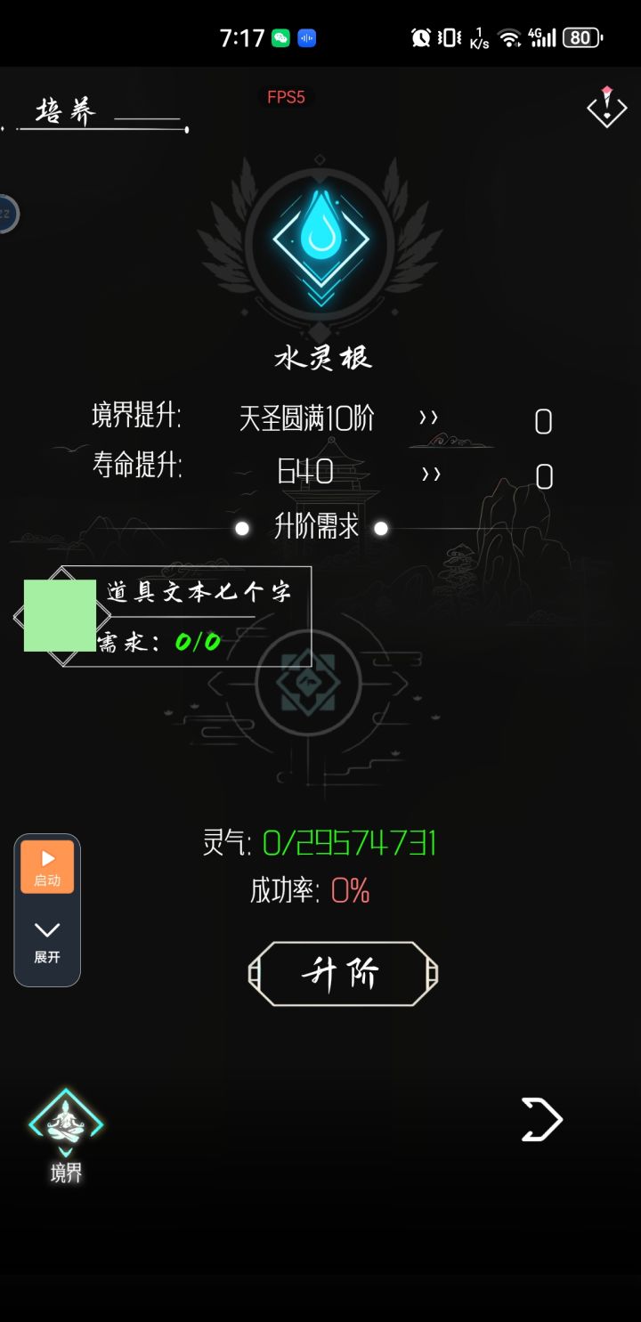 一,开局先把灵根资质气运刷高一点,这样生命高天数一点,二,废土,焦土率,这个开局最好少一点,解锁的越多,后面出来的上供的就越多三,要是想用最快速度通关,就要解锁多种灵州,让人上供,点击拿上供,有垂钓点,小退再进去会有很多上供。只有上供才有各种丹药四,解锁灵州时尽量用各种劣等的资源,然后再使用普通,再采用优质,最好不要用精品,精品比较难刷五,要卡着资源升级,因为灵气最开始会差很多,每次突破,