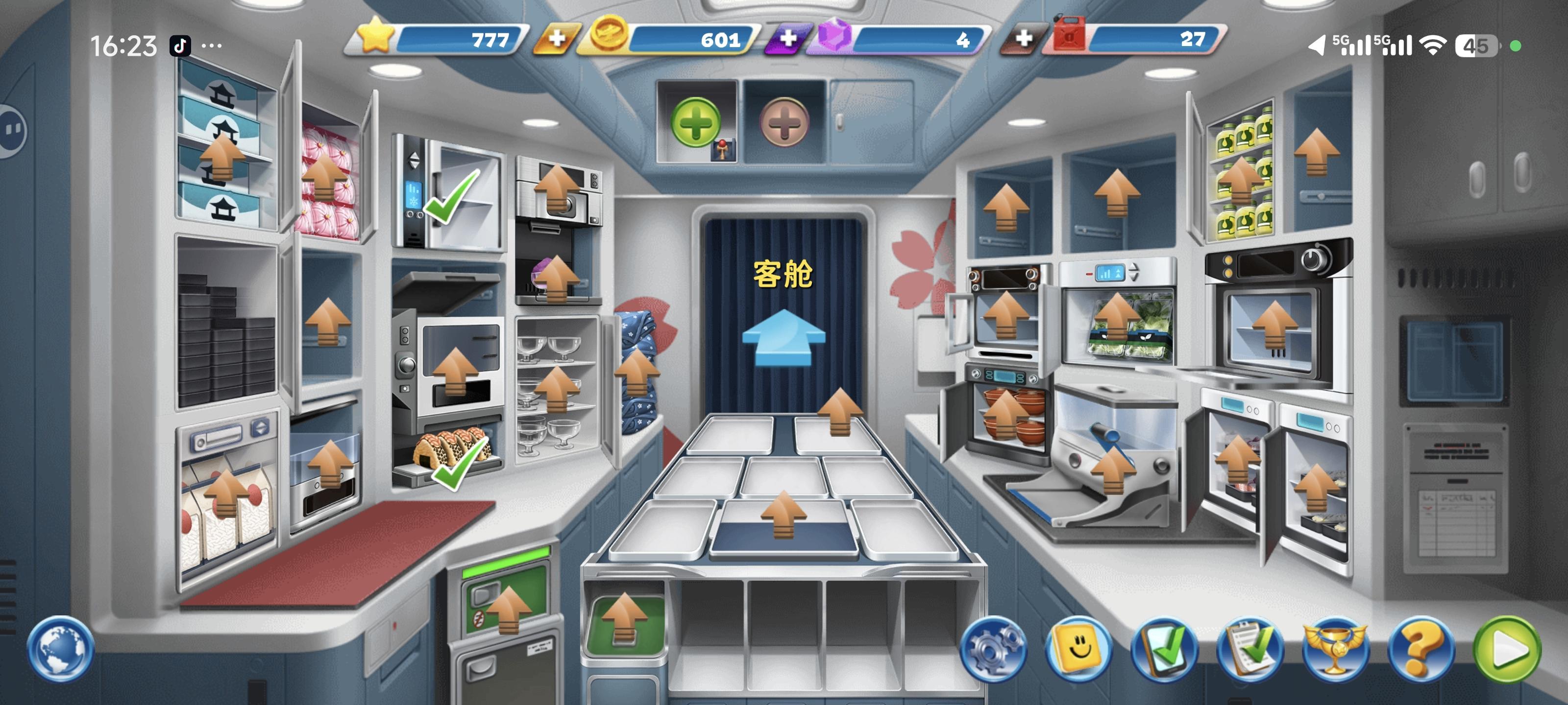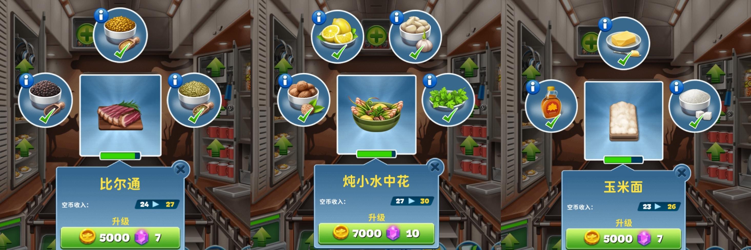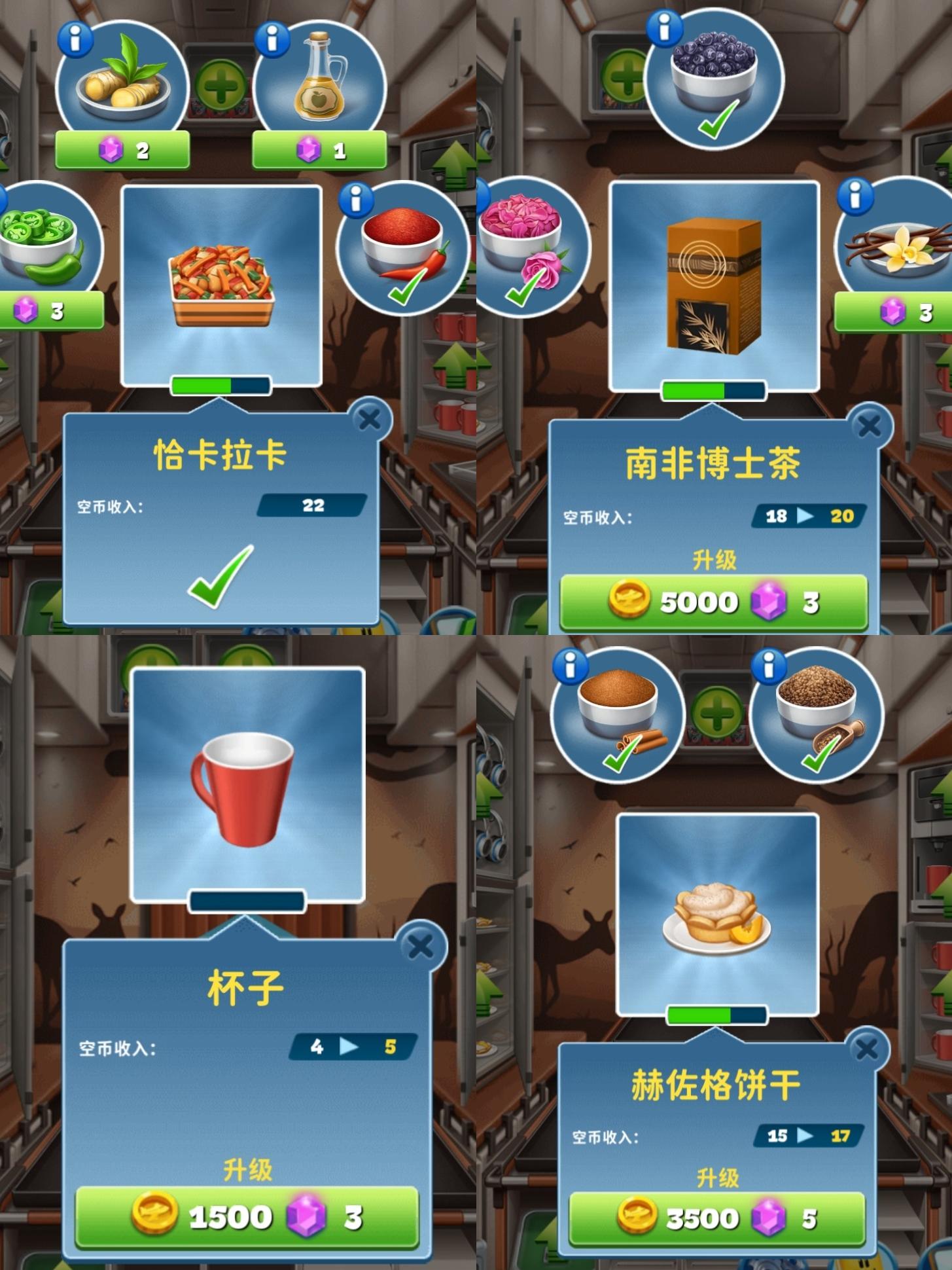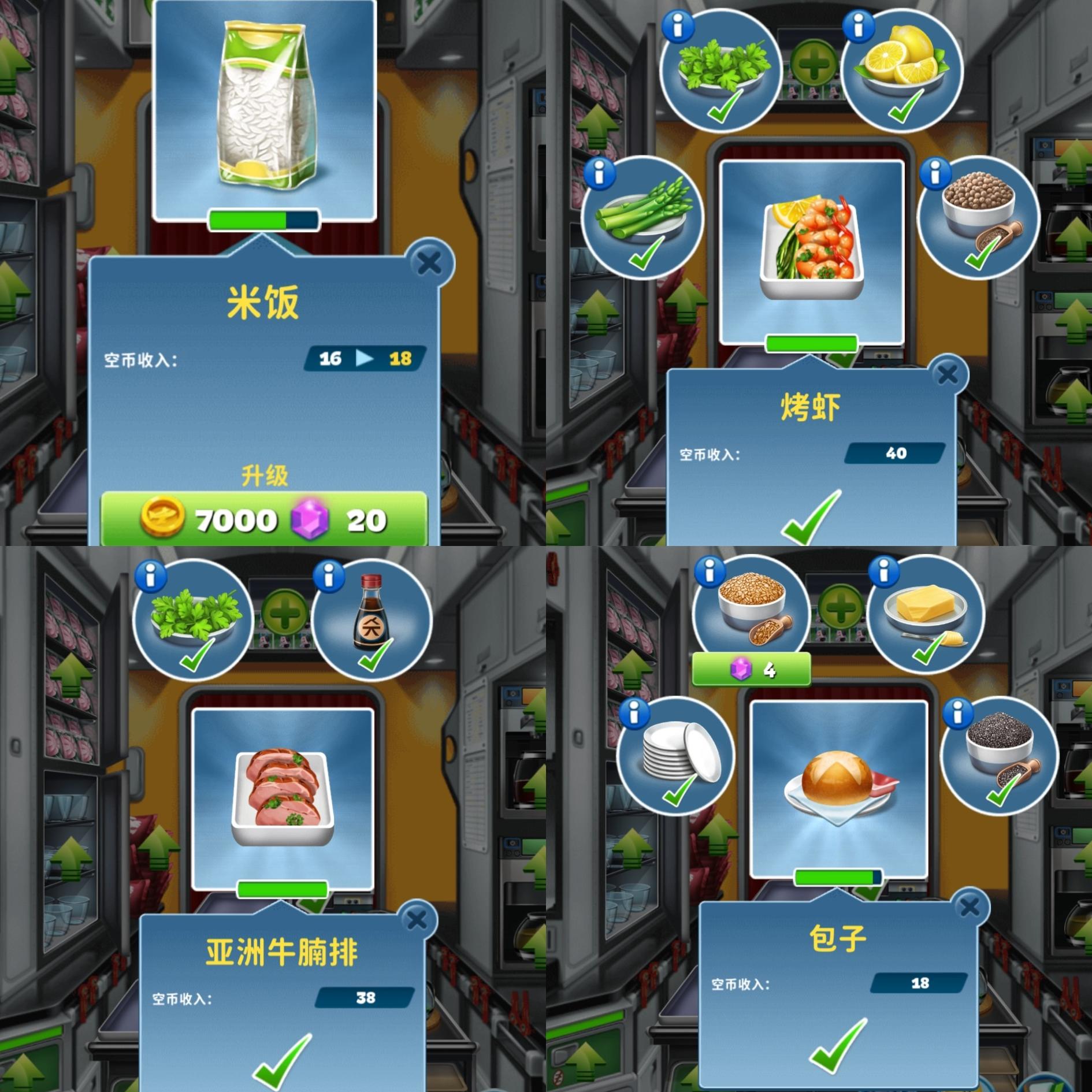 我的升级是56-69(emmmm…其实座椅升的偏高了,我觉得座椅升级纯看手速哈。) 然后这关没用纪念品,刚刚好足够三星的。说明食材也略高,其实可以用纪念品补,如果没有打超难的需求的话确实不用升这么高的。[表情_捂脸哭] 这关其实可以根据视频参考一下两个锅食材的准备顺序,这个真的蛮重要的,然后这关馕的需求量一般,但是那个烤鸡要的是真的多,需要不停的做。另外那个酸辣酱,我真的十分建议在食品室开一个酸辣