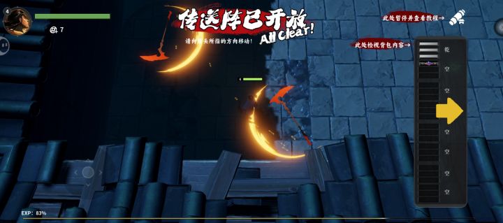 我其实是打算多打几关,多组合几个技能,截几张不同的大招图片再发评。因为前一天巽卦出现的岩石壁真的很惊喜,几个小怪昏头晕脑撞在突兀出现的墙上,好笑。还有兑卦带的清风环,围着玩家转大圈,感觉很酷爽。可惜当时忘记截图,打算今天多截几张。结果今天上手,发现场景变化了,掉落的爻也不同,形成了乾卦。原来这个游戏场景也是随机的?这么丰富的场景设定和整整64卦相的招数排列组合,真是令人惊叹,感觉到制作者满满诚意