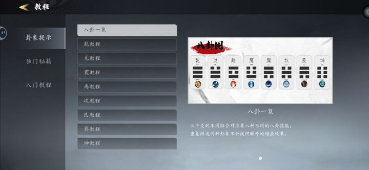 先说个偶然发现,八卦一览里艮与巽重复喽,艮覆碗。重复游玩了七八次,通关一次,体验了大部分的上上卦,通关的是随机陨石,闪电链,全屏冰和眩晕阵,成型强度并不夸张,仍然在跑酷(个人想法是降低些范围高伤技能的随机性,面前有敌人却完全空放的无力感让人有些失落。例如,设置个四等分象限的按键,技能随机位置在当前选中的象限范围内,操作频率不会很高,又有些决策的爽感)。或许结合其他非上上卦会更好些