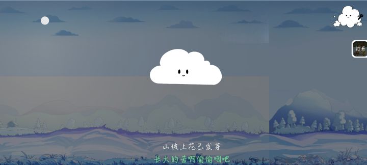 一.画面1.画风整体可爱轻松,但是季节之间、同季之间画面切换过于生硬 可以改变柔和一点更加连续。2.冬季画面天空最右方分割处存在高亮区,夜间尤其明显(如图1)3.云朵下方有个长方形无阴影区,是设定还是bug呀(疑惑)(如图2)二.机制1.无记录保存机制,退出后再次点入得重头再来2.成就达成后,不可以点开(放大看),导致达成之后很茫然,希望可以增加一下成就描述~3.走到最右边,之后回到