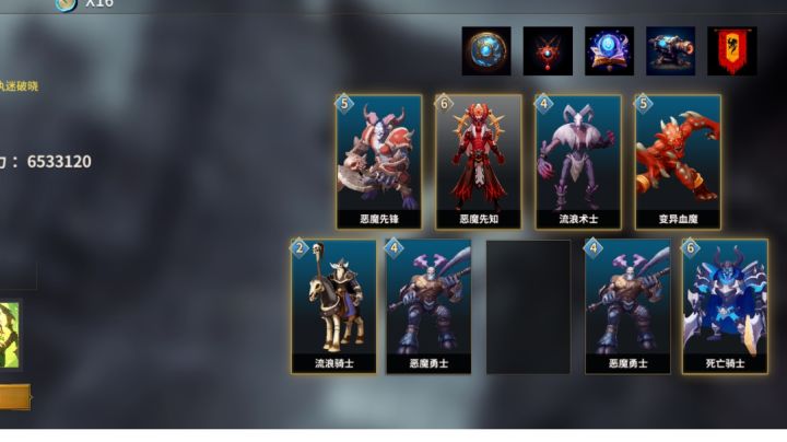 常规亡灵套:死亡骑士、大巫妖、变异血魔、恶魔勇士、恶魔先锋电表半套:牛头人酋长、独眼监工通过不断献祭流浪射手,触发独眼监工,获得大量金币,然后又能买流浪射手了。