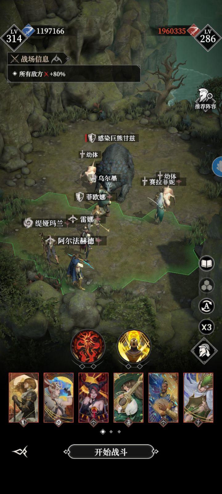 威力(破甲/法穿):6.2(13)左右装备/天赋银夜:弗洛瑞尔套/2212莫拉、变形者:摩尔多斯套/2222亲王:摩尔多斯套/2111光盾:塞雷娜套/1212光奶:弗洛瑞尔套/2122思路:双增幅都给莫拉【焚血泰坦·怒火】单只泰坦,这个最简单【焚血泰坦·盛焰】一带二,其实也不难,开局要凹一下不减员,如果你有护盾石,那将会简单很多【焚血泰坦·狂暴】一带三,其实也不难,开局要凹一下