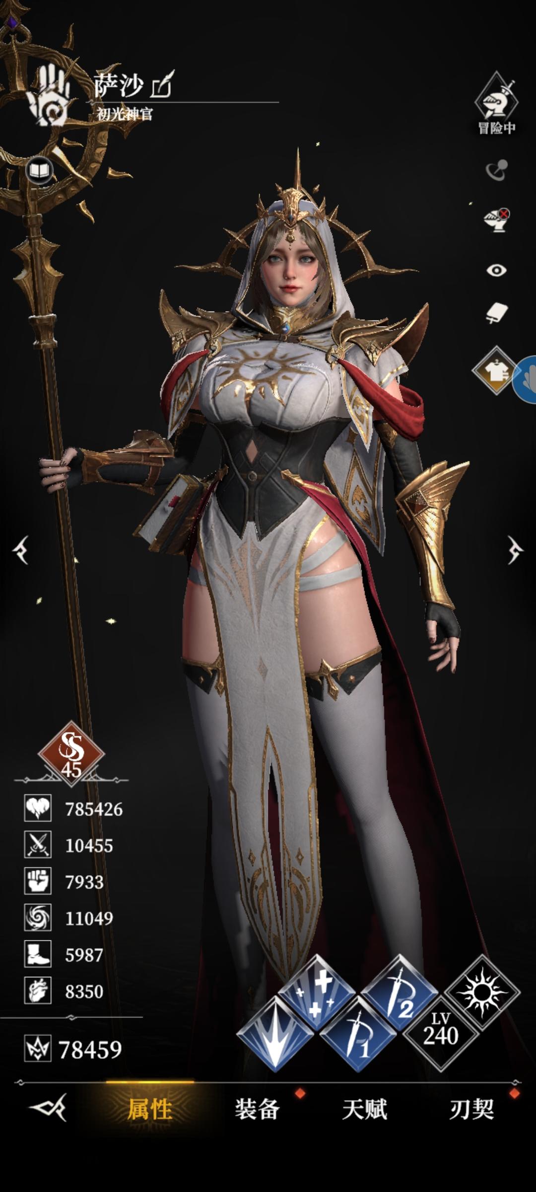 雷娜吸血套(右右右左/45刃)骨女回能套(右右右右/45刃)亲王破甲套(左右左左/40刃)盾娘、奶妈回能套(都30刃)神力:狂热/减疗扛不住的话神力换加血,或者雷娜是破甲套的话也可以换加血,自己根据硬度来调整,缺伤害就上狂热,扛不住就加血,减疗必带装备:氪金甲/氪金弓战力:49W(说白了就是比较肉然后一直没怎么打铁导致威力很低)细节:奶妈第二层天赋点净化(因为我没带回血净化)狂热