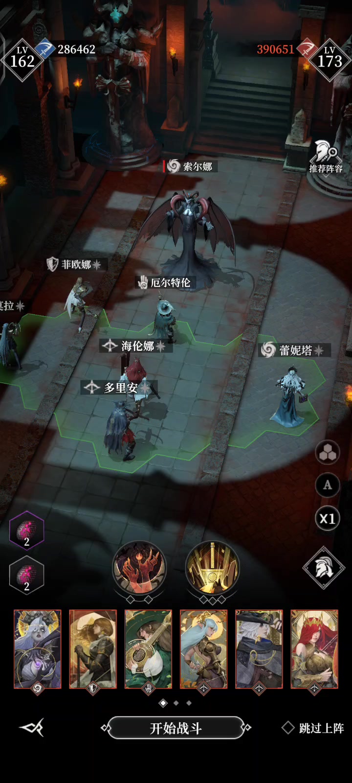 要点:后排输出高,先打,boss可以放最后。 我没有寂灭,就只能从右边突破。前面放两个能抗住的,后排一个骨语就搞定了。