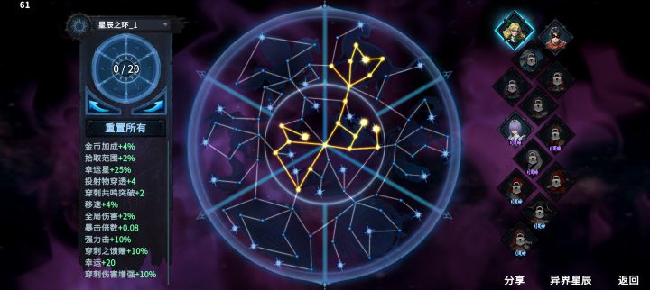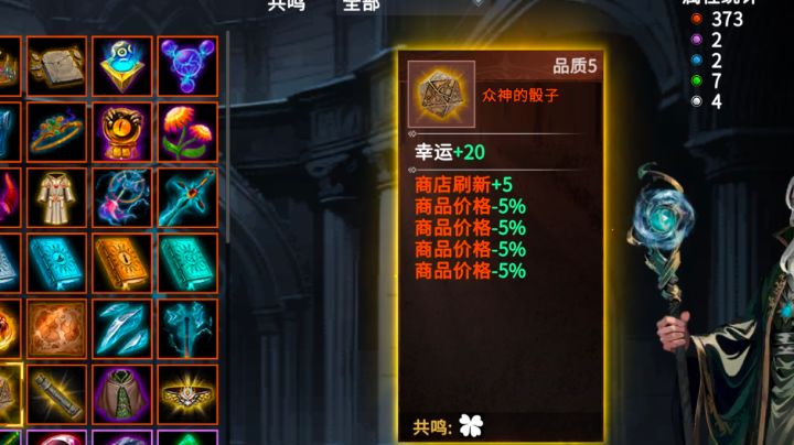 开局可以在左边仓库选,有神性上限,筛子有五条所以基本上必带,棋盘直接+1点,开局3天选审判者之心-----------固定属性: 至高+1随机属性:全局伤害+10%全局伤害+10%收割+20%暴击倍数+0.2-----------在收藏馆异界神器中输入分享码可获得,获得的时候会随机重置一个属性,分享码: o1aspu3gvJrrPdyYhcKVssn5HhvFXrxBNz