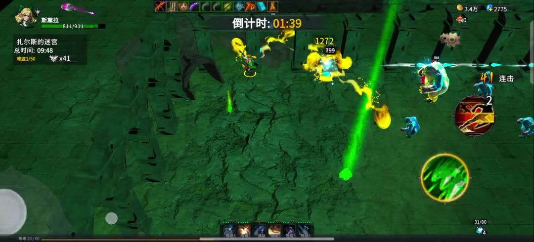 如图,两个上一把的角色,不动,一直放技能。而我自己的角色前几级还好,后面升级都不能选技能,升级技能界面都不蹦出来,只能选神器。而且一直都是这个图,时间都1分30秒。