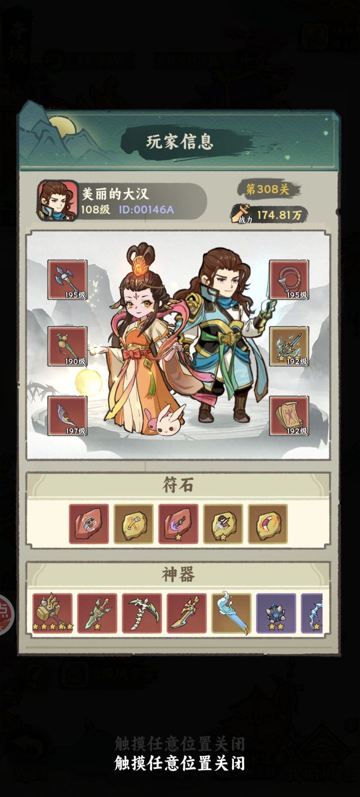 大家好,本人美丽的大汉,全服战力榜前20,战绩可查。视频为主线308关,解法为主线100层以后关卡的通解。刚需红锤子,橙夺魂戟,橙夺魂斩符石,其他都随意。如有需要详细解析的请在评论区留言,我去写一个主线攻略帖~