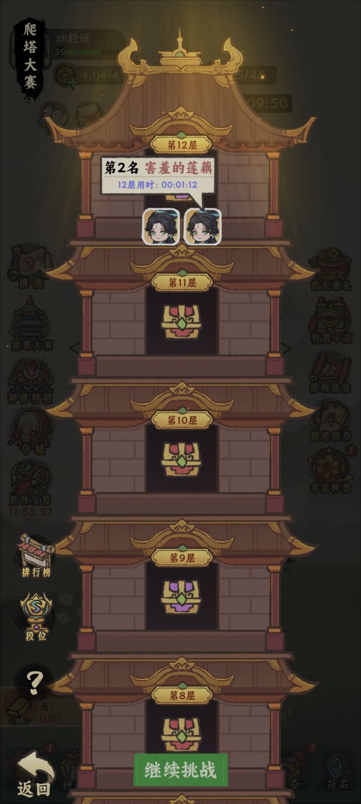 每天都有莫名其妙的机器人爬塔在1分左右,再快的话也不至于这么快吧?就这装备连我都不如,是怎么这么快打完12层的,氪金大佬也才1分20秒出头,游戏机器人也是猖獗的很啊