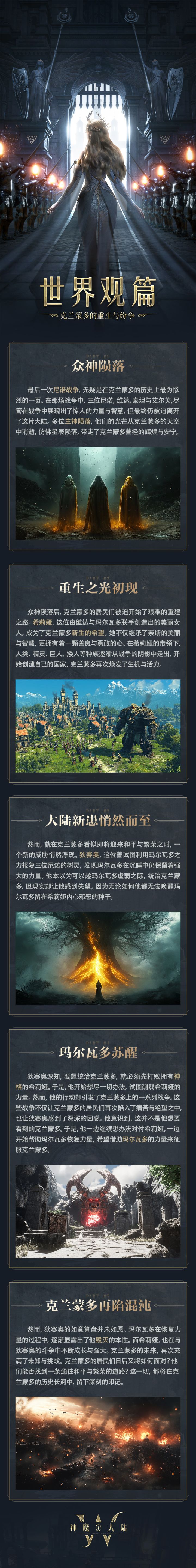各位勇士:欢迎踏入克兰蒙多大陆!在之后的旅途中,我们将携手穿越时空的迷雾,重返神魔纪元,降临到这片由神魔意志共同编织的传奇之地。无论你是身经百战的神魔老玩家,还是初涉此地的崭新探险者,这片大陆上都有你未曾探索的奇迹与辉煌。每一场战斗,每一次抉择,都铸就了克兰蒙多大陆独一无二的历史篇章。继前两期世界观我们分别回顾了克兰蒙多大陆的起源,追溯克兰蒙多之殇,以及感受到尼诺战争时期神明因内讧造成大陆难以
