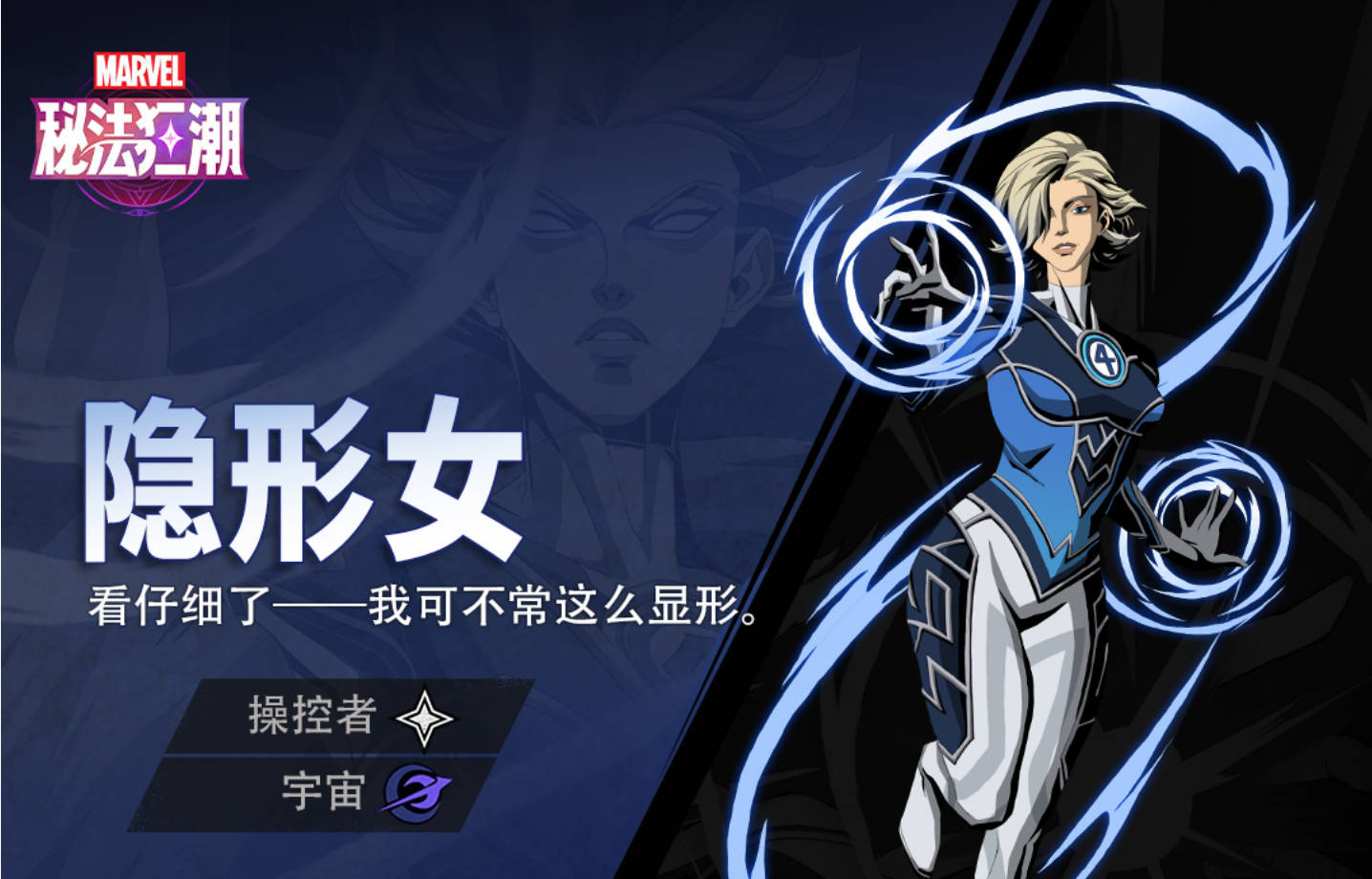 前言新版本神奇四侠也是上线了,本期介绍是上半场上线英雄[隐形女],宇宙类型定位操控者的三星英雄,角色关键词:神奇四侠,护盾,无法被选中,拥有开局就给盾的安全感,以及技能让我方无法被选中,如此强大的机制PVP首选。11月19日至12月10日,卡池结束进常驻池获取方式在最新限定招募池【隐形屏障】,陪跑的二星英雄为[霹雳火]与[浩克](也是吃上保底了,概率有点难抽)技能介绍被动技——防护力场