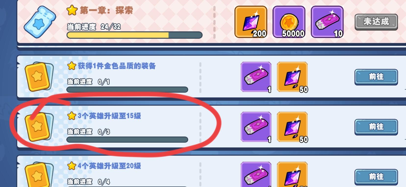这个任务说要3个英雄升至15级,为啥我这好几个15以上还不完成?