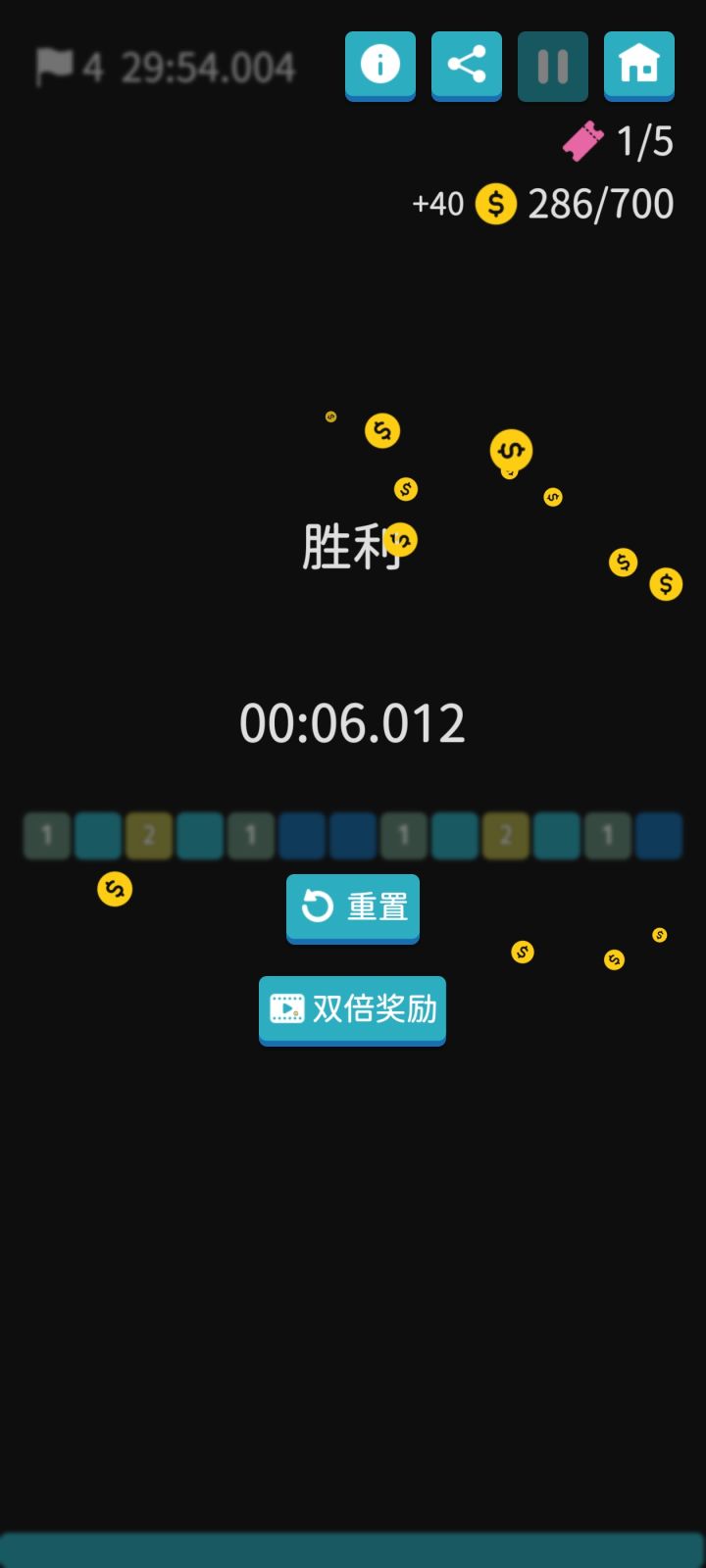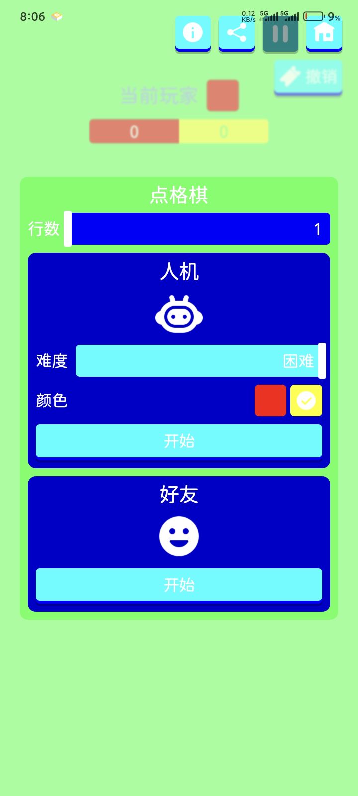 #游戏攻略 想要快速获得金币,只有“颜色变换”和“点格棋”这两个,“点格棋”获胜一次给20金币(需要像图中那样,困难并选后手,并且与大佬所说的不送),“颜色变换”变换一次颜色(获得一分)给3金币。