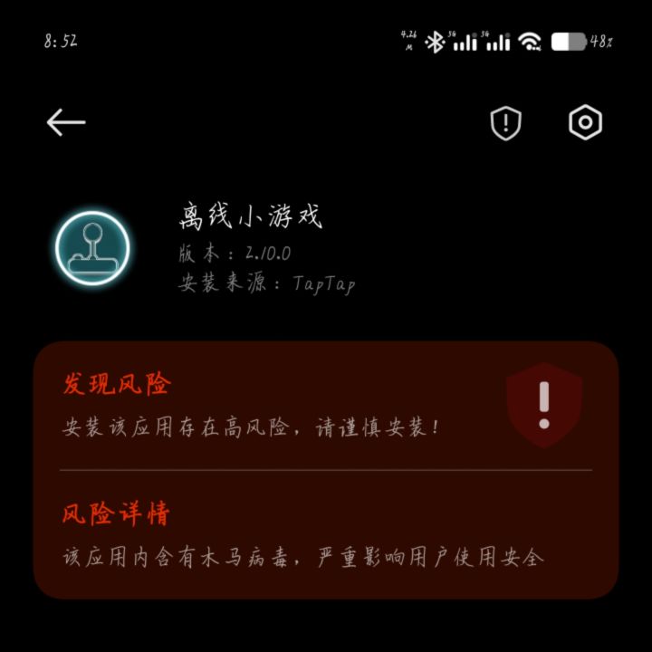 刚下完要安装,手机直接就报毒,我也不知道为什么。手机系统是是小米澎湃OS3