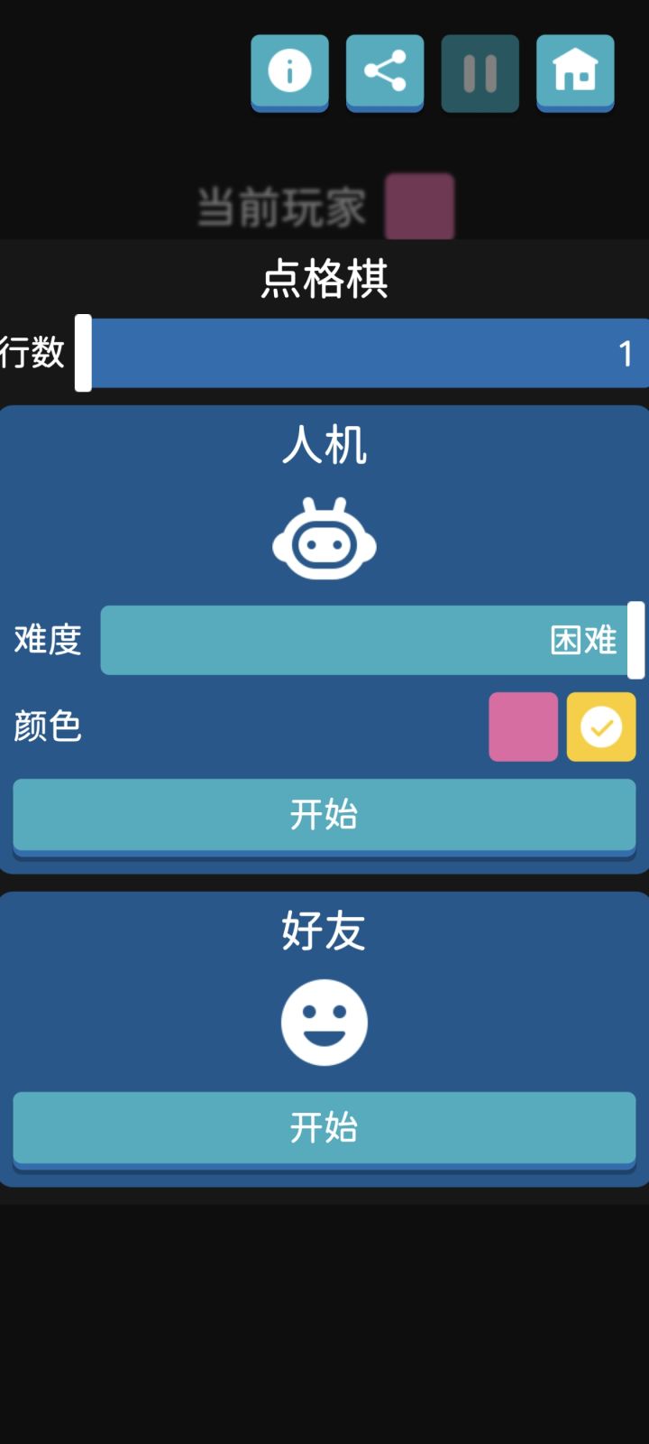 点格棋里行数选择一行,难度调成困难,选择后手后进游戏有概率触发先手红方多下几步的bug,而且上面的当前玩家的显示也一直是粉红色不会变化,不知是显示问题还是其他因素