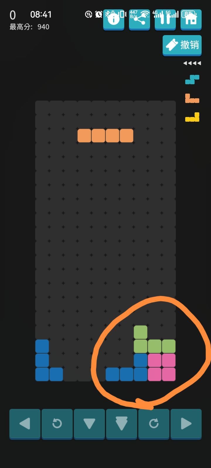 右上角的后续落块提示显示错误(如图)图1为提示落块,图2为实际落块,颜色一样形状不同
