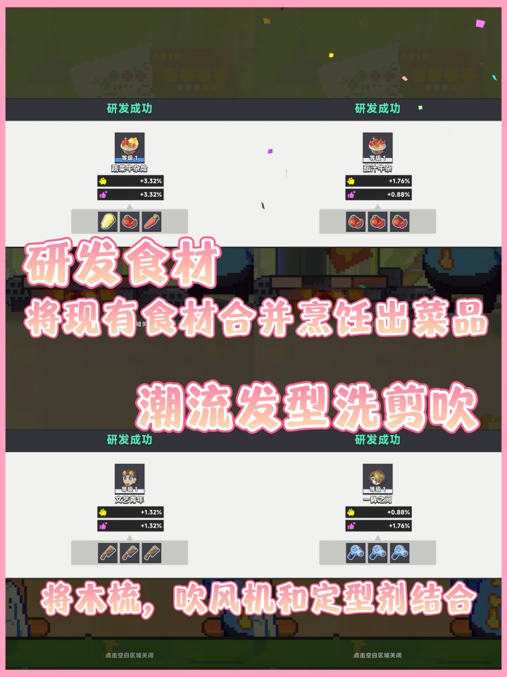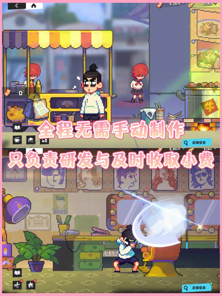 🎮游戏:伍六七:暗影交锋🎮平台:TapTap✨✨✨✨✨✨✨✨✨✨✨✨✨✨✨💕伍六七手游拿到测试,这里我有话要说‼️🕹️首先游戏主要玩法还是以横版动作冒险为主,模拟经营只是一小部分。✨✨✨✨✨✨✨✨✨✨✨✨✨✨✨🍡这篇就主要聊聊模拟经营玩法‼️🕹️你将经营一个牛杂摊位,还有一家洗剪吹店铺。首先面临的就是研发!不论是美食还是理发都需要你亲自研发。牛杂:选择食材——投入——新品菜完成理