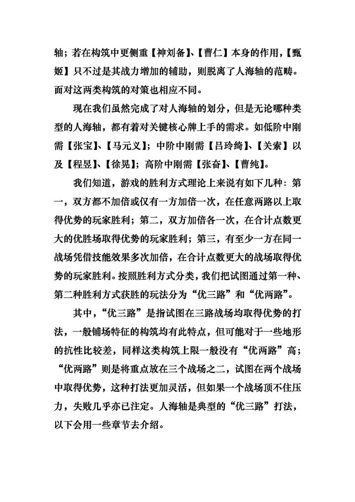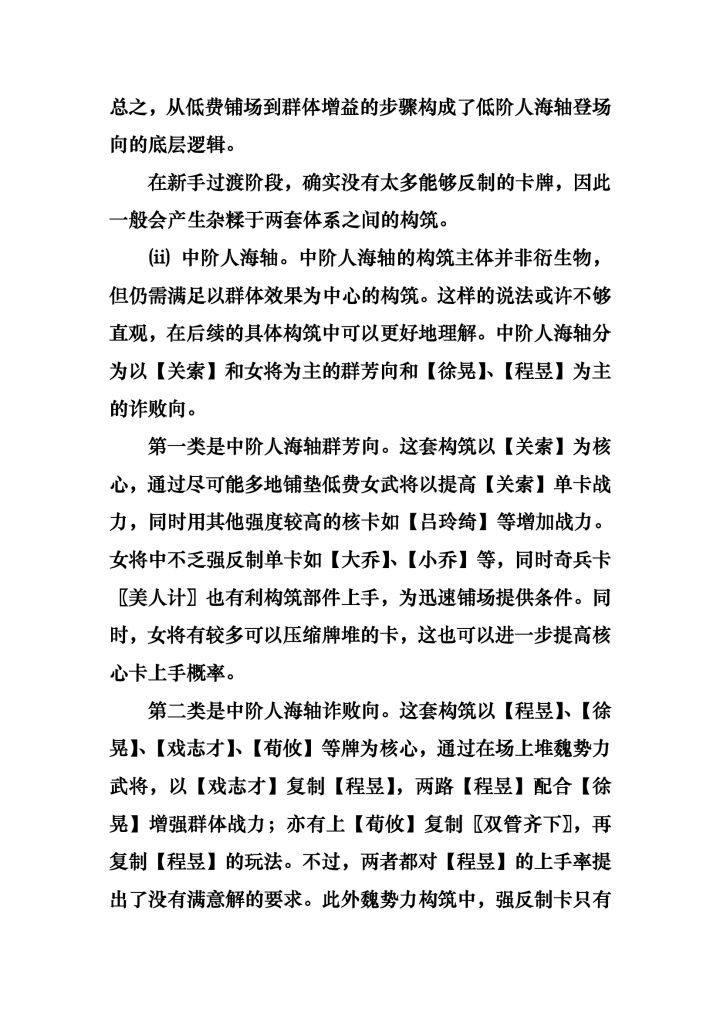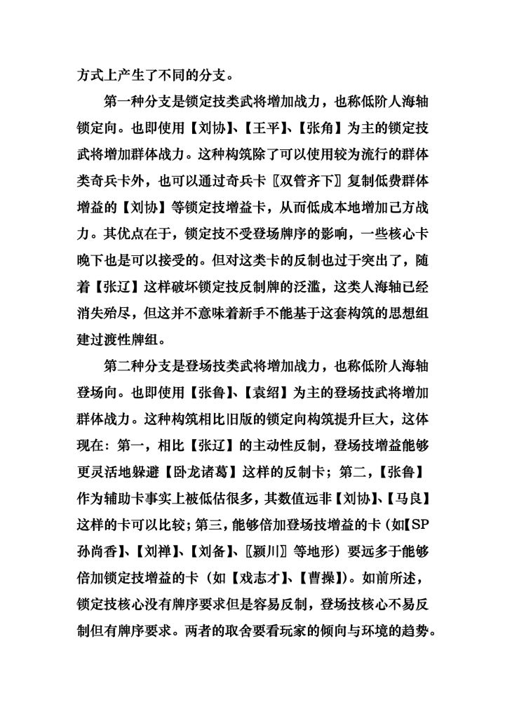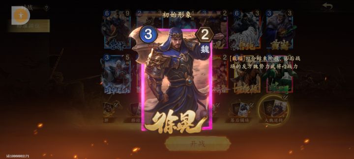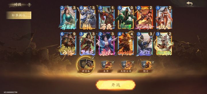 #夺帅攻略 该卡组核心思路有两。 第一是通过程昱徐晃戏子构筑成落后流铁三角,源源不断的为魏国棋子提供战力。最终通过sp孙尚香➕曹纯的组合,释放出四只甚至六只虎豹骑填满场地,终结游戏。 第二,可以通过南华老仙来进行跳费在前期打出高费卡(曹纯或曹操),具体拍谁主要取决于所选奇兵以及上手高费卡。开局拿了双管,则可以选择拍曹操或者关羽进行复制,获得一个低费锁定大哥,开局拿了卷土重来可以考虑下曹纯,