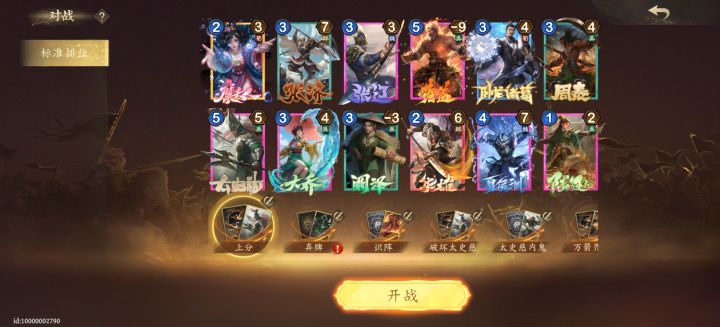 给你们分享个上大师卡组 这套卡组强的点在于不太依靠太史慈 核心卡是陆逊 大乔两张卡 可以阴人上大分 如图(这个对面好像是人机)最后一回合就是猜测对面会加倍中路 然后我也加倍中路用大乔吹走对面 用陆逊拉卡 阴了对面8倍糜夫人好用 不怕卡太史慈 张济 周泰 华雄都属于身材高 用于抢第五回合先手 抢到后手里有大乔基本上必赢的 用过大乔的都说好用 张辽 诸葛亮针对卡 针对用黄盖 阚泽一般下了对面就不会往对
