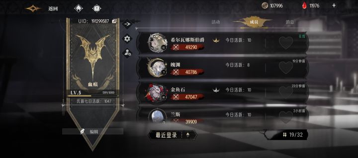 氏族UID:191299587开服氏族,把好多不上线的都清掉了,空位还蛮多,战力高点长期上线的来呀,过两天氏族围猎了。#银与绯 #银与绯公测