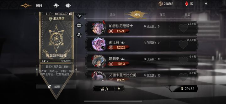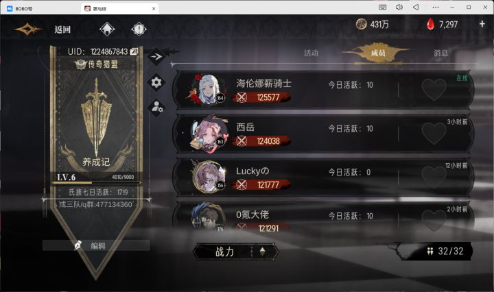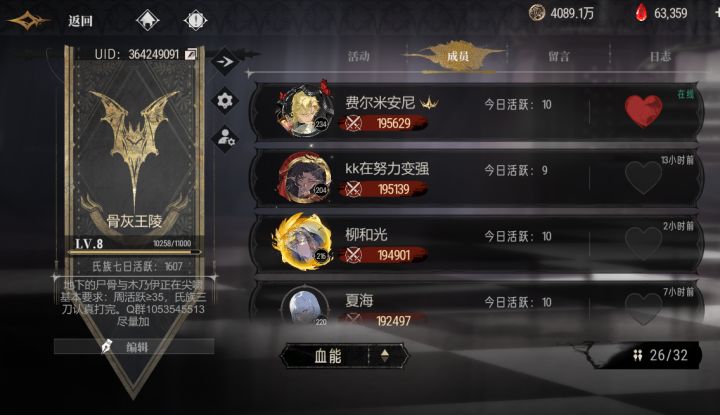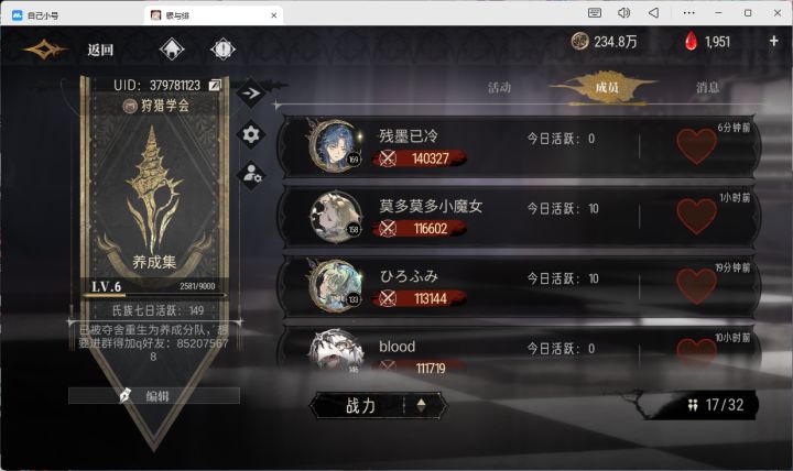 13W以上满活跃的兄弟申请,我上线看见直接通过,ID273678339#银与绯 #氏族 #氏族码 #银与绯招募