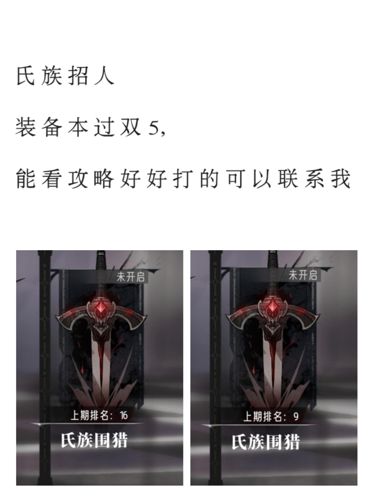 无排刀无战力要求 保持活跃即可 氏族围猎能出满次数就行 氏族ID:75038723 欢迎你的到来!