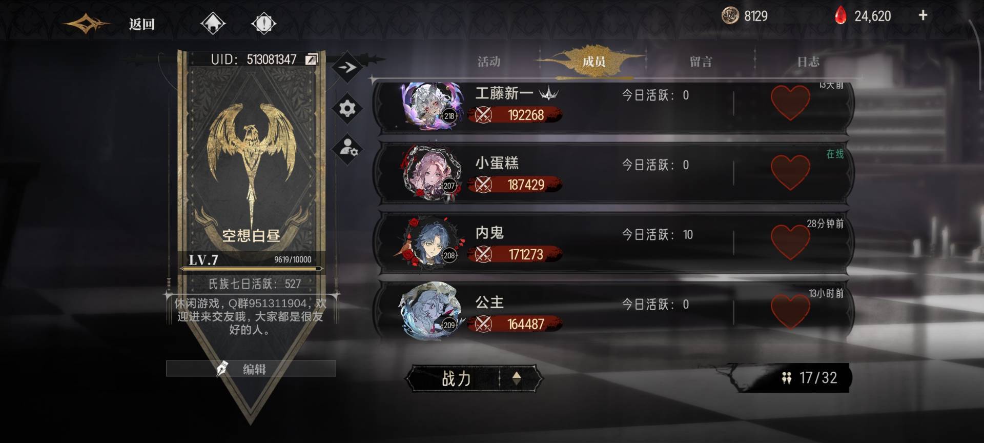 氏族1:从不骗人(15w+,上期排名87) UID:548208643 氏族2:空想白昼(纯养老) UID:513081347 直接搜索申请进入,无需审批 想进群聊天的可以扫码进群✼提供前50氏族上升通道✼